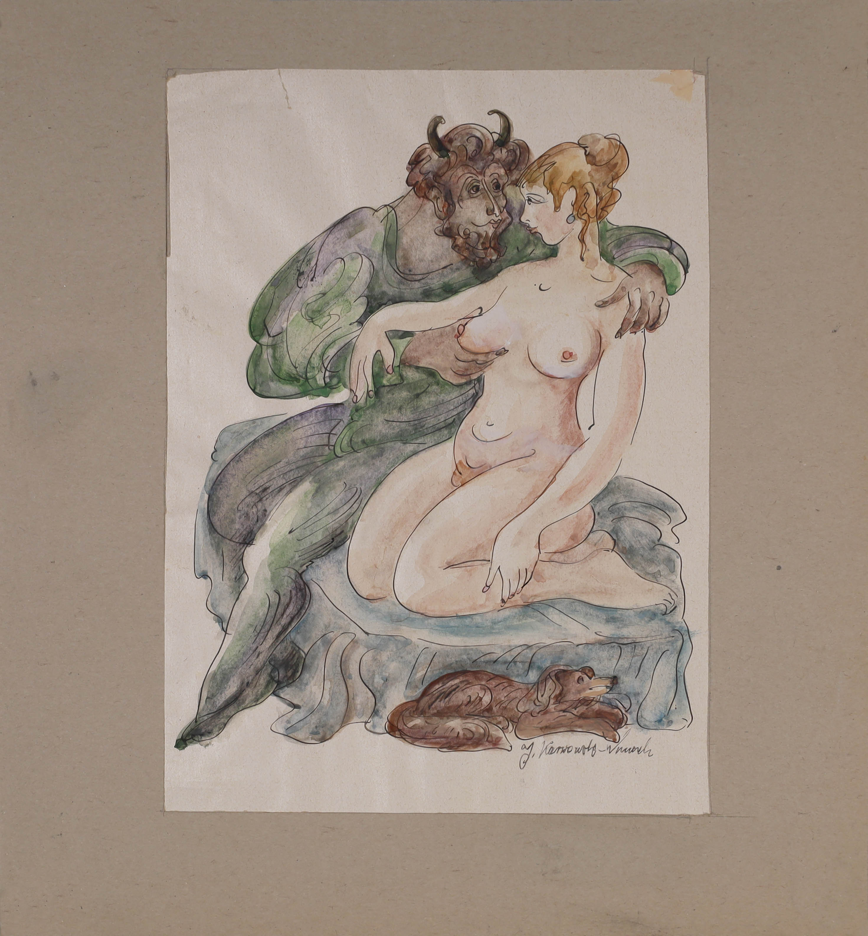 technika mieszana (akwarela, piórko, tusz, gwasz), papier, 31 x 25 cm,sygn. p.d.: J. Karwowska-Wnuczak