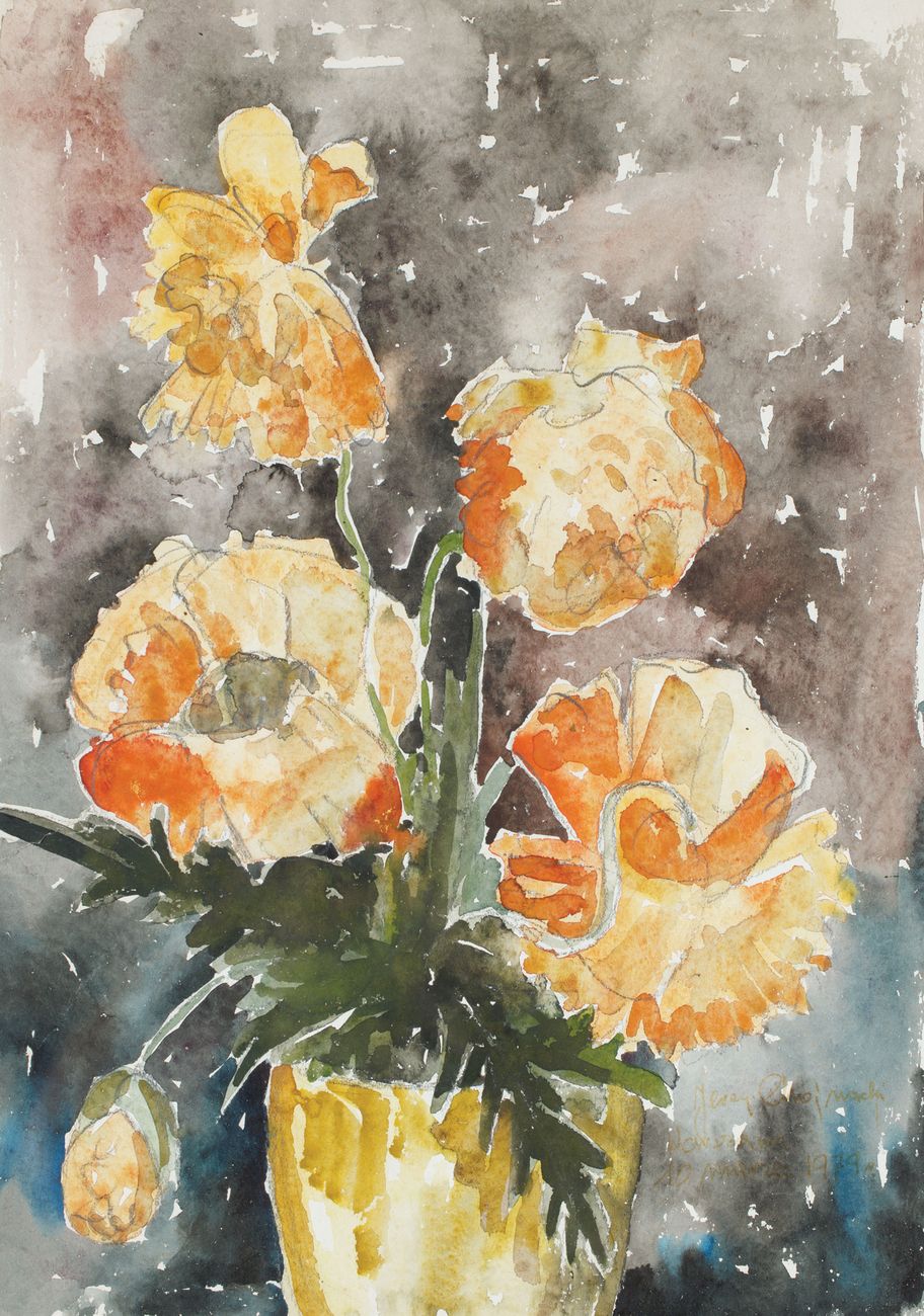 Akwarela na podrysowaniu ołówkiem, papier; 47,5 x 34 cm