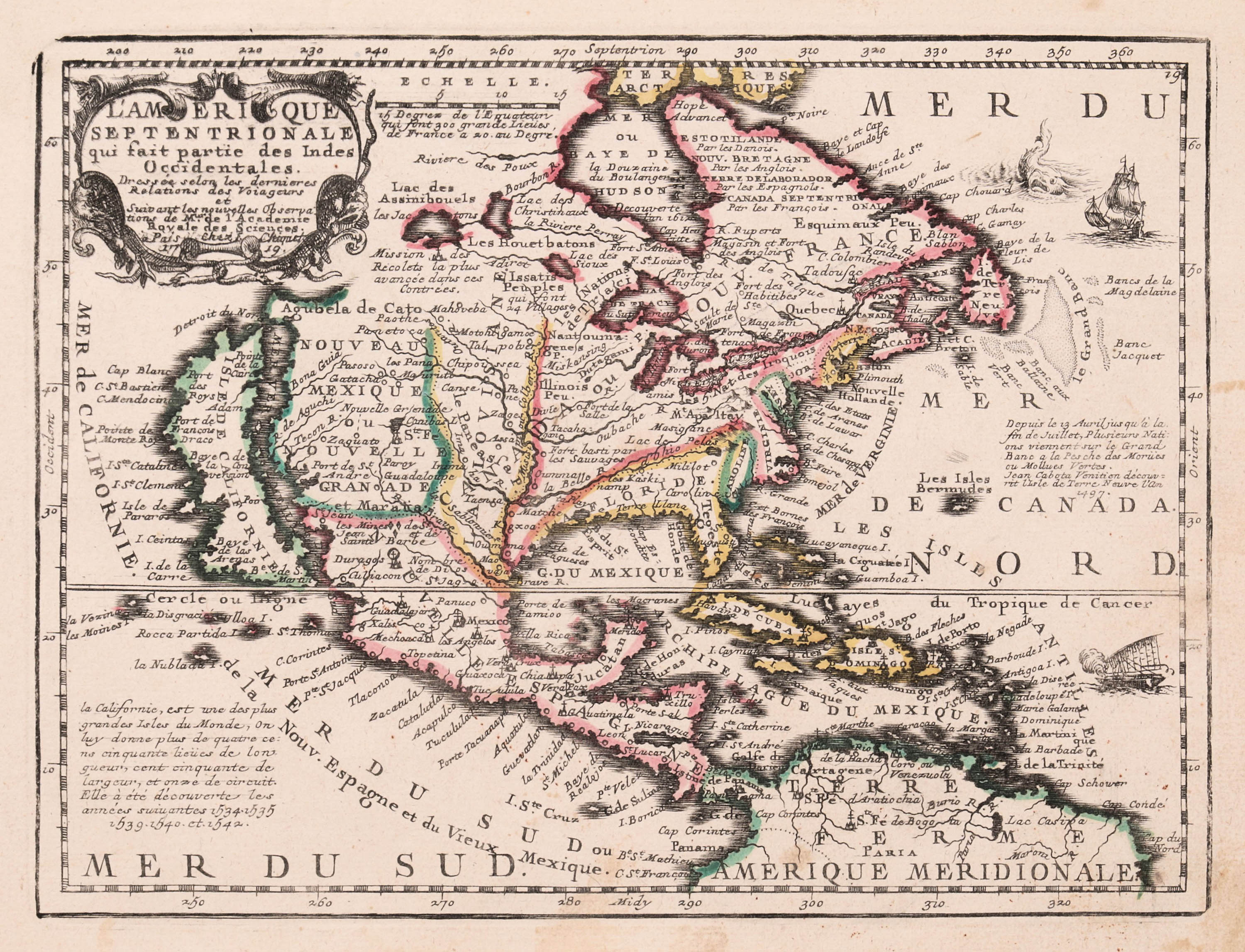 Mapa Ameryki Północnej, pochodząca z “Le nouveau et curieux Atlas Geographique ...”, Paryż, 1719