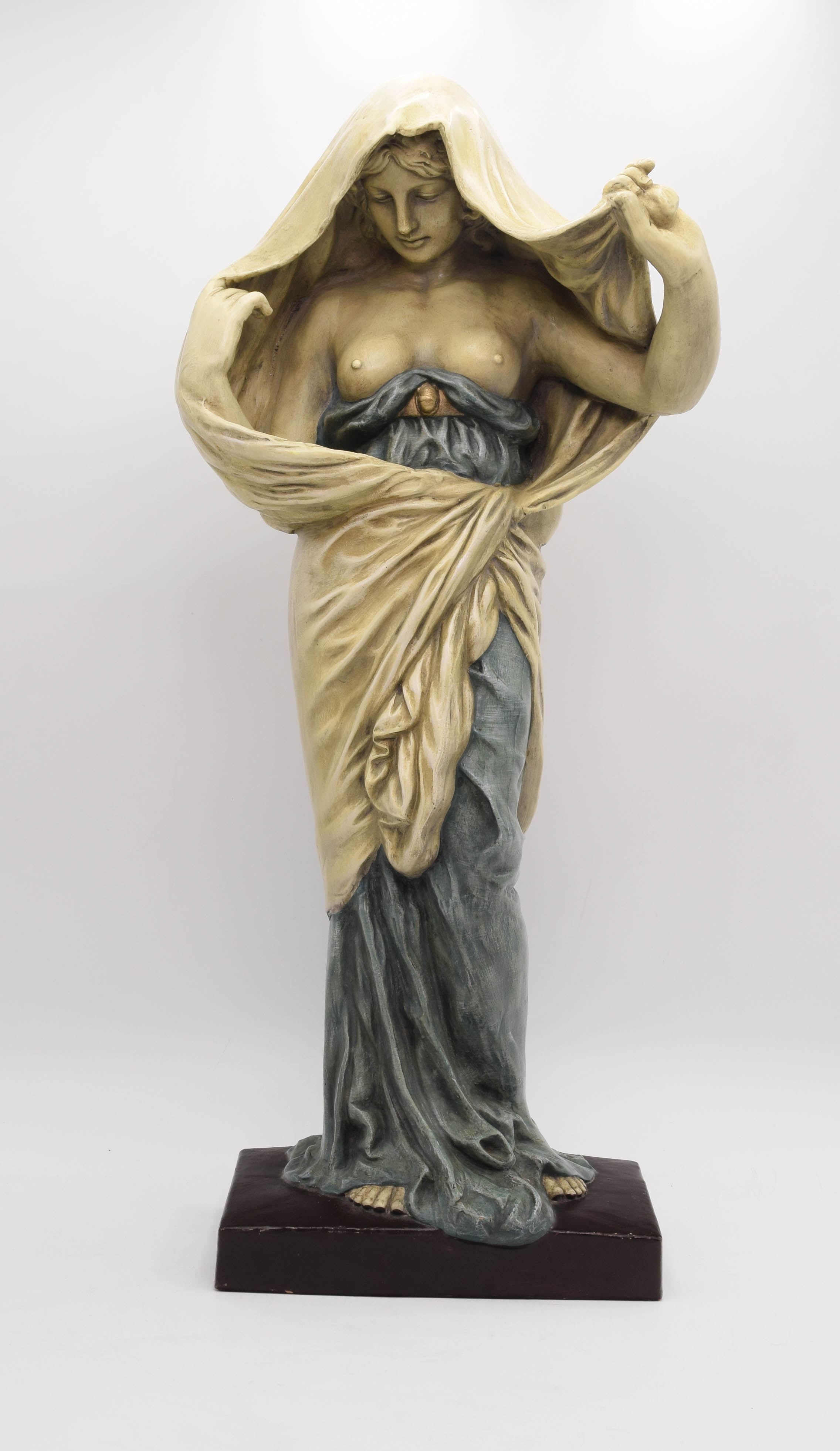 Ceramiczna kopia znanej rzeźby z marmuru w technice chryzelefantyny francuskiego rzeźbiarza, ucznia paryskiej Akademie des Beaux Arts. Kompozycja była kopiowana w brązie i ceramice.