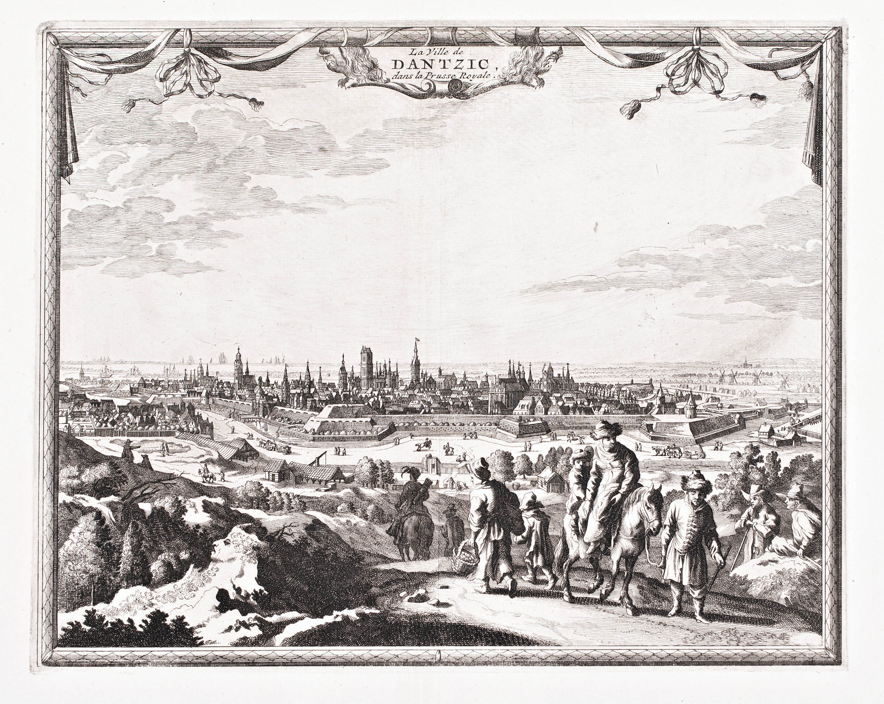 Panorama Gdańska od południowego zachodu, Lejda, 1730 miedzioryt, wym. widoku 22 x 27,5 cm stan zachowania: niewielkie przetarcie papieru w partii nieba, lekkie zagniecenia Dantiscum Emporium, G97/2