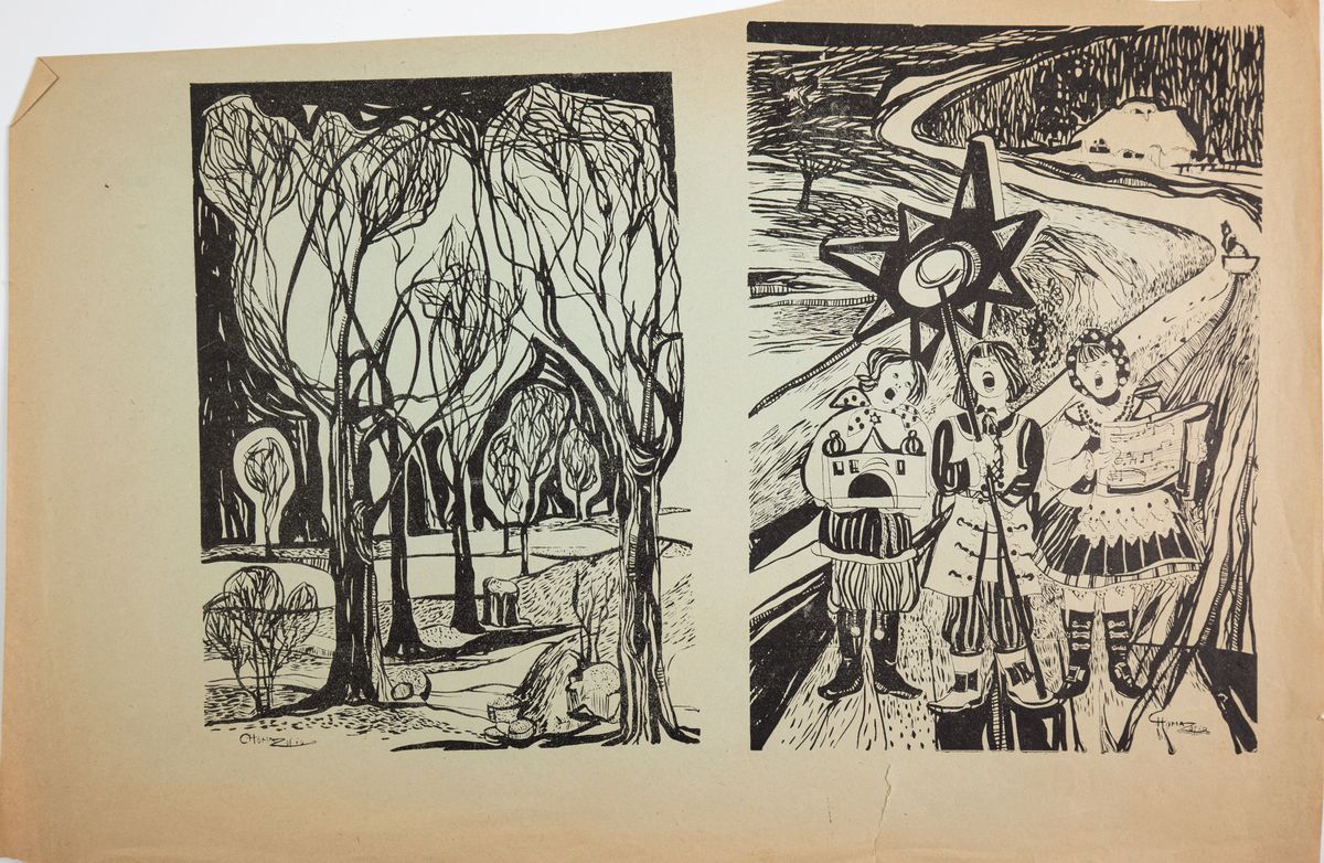 Linoryt, papier; 23 x 16,5; 24,5 x 18 cm (kompozycje) na jednym arkuszuSygnowane z płyty: Choma Zofia