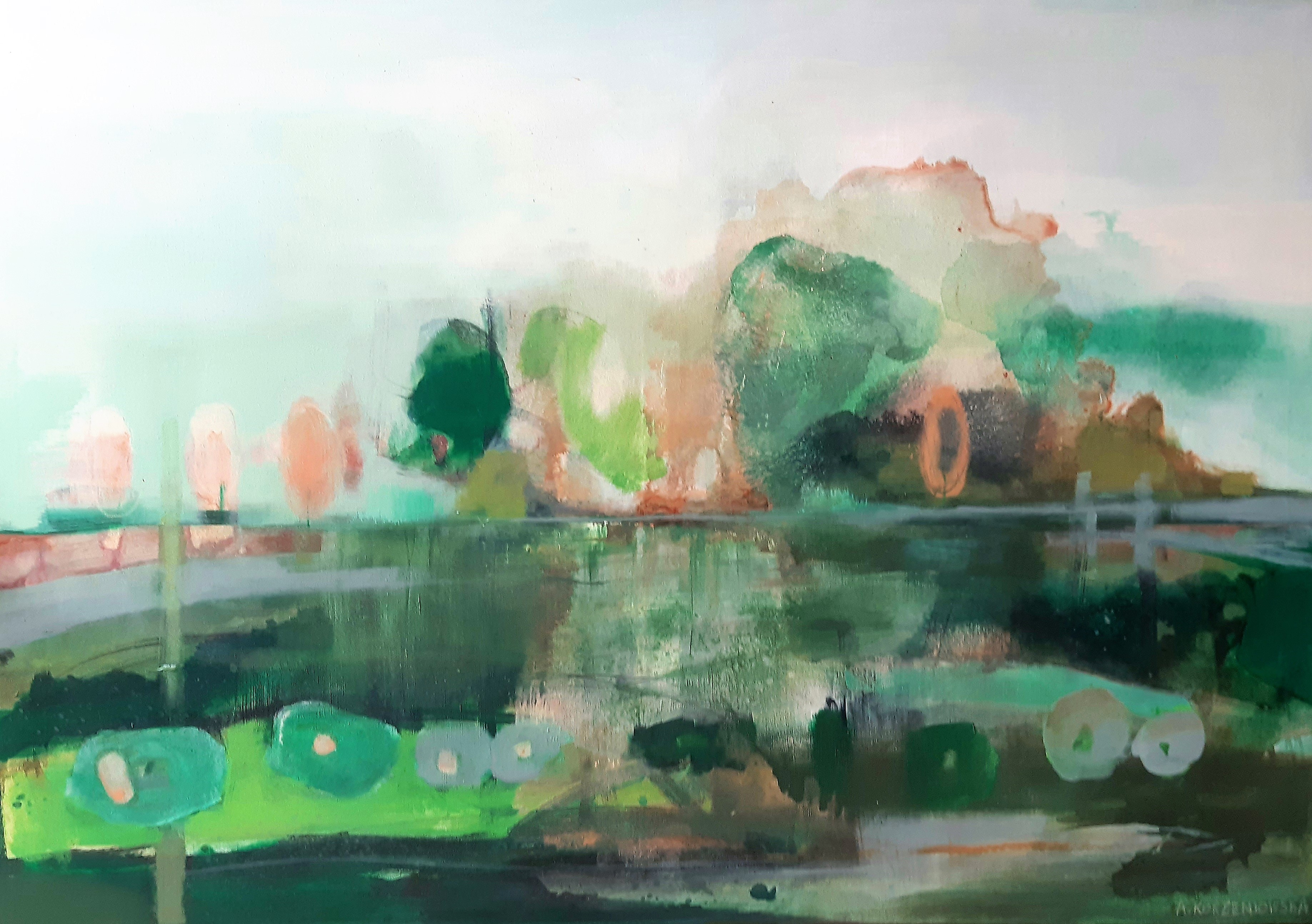 technika mieszana (akryl, pastel olejny), płótno, 70 x 100 cm,