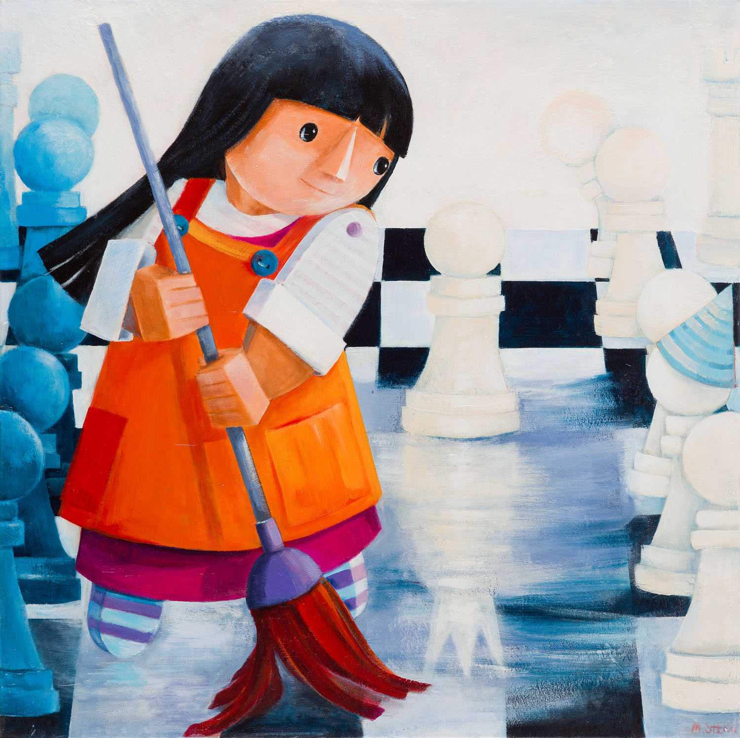 akryl, technika własna/płótno, 80 x 80 cmsygnowany p.d.: 'M. STERN'na odwrociu opisany: '"Lekcja improwizacji" | Mirella Stern | 2018'