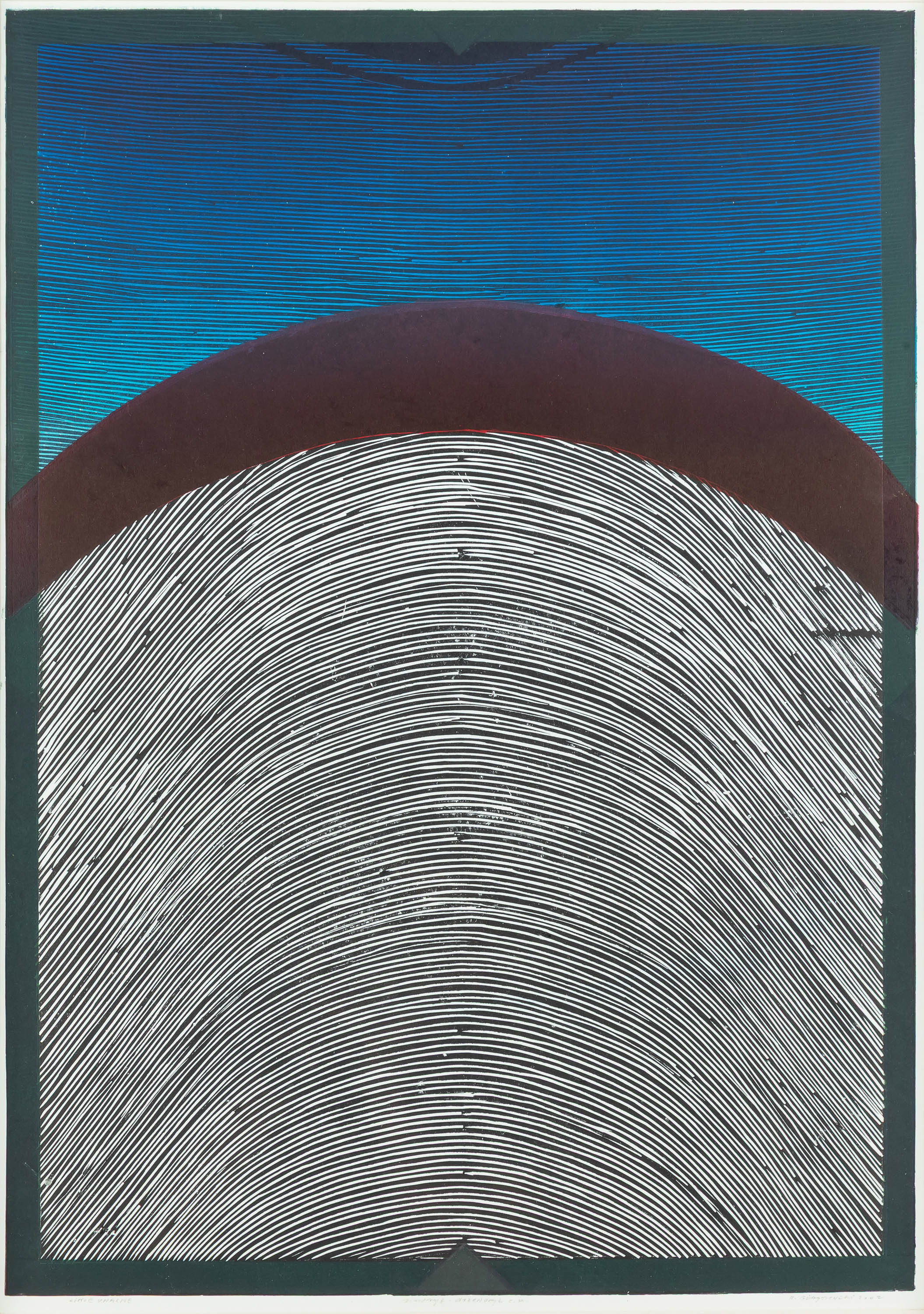 linoryt, drzeworyt, papier, 64 x 45 cm w świetle passe-partout,sygn. i dat. p.d.: R. Gieryszewski 2007, opisany l.d.: Linie owalne