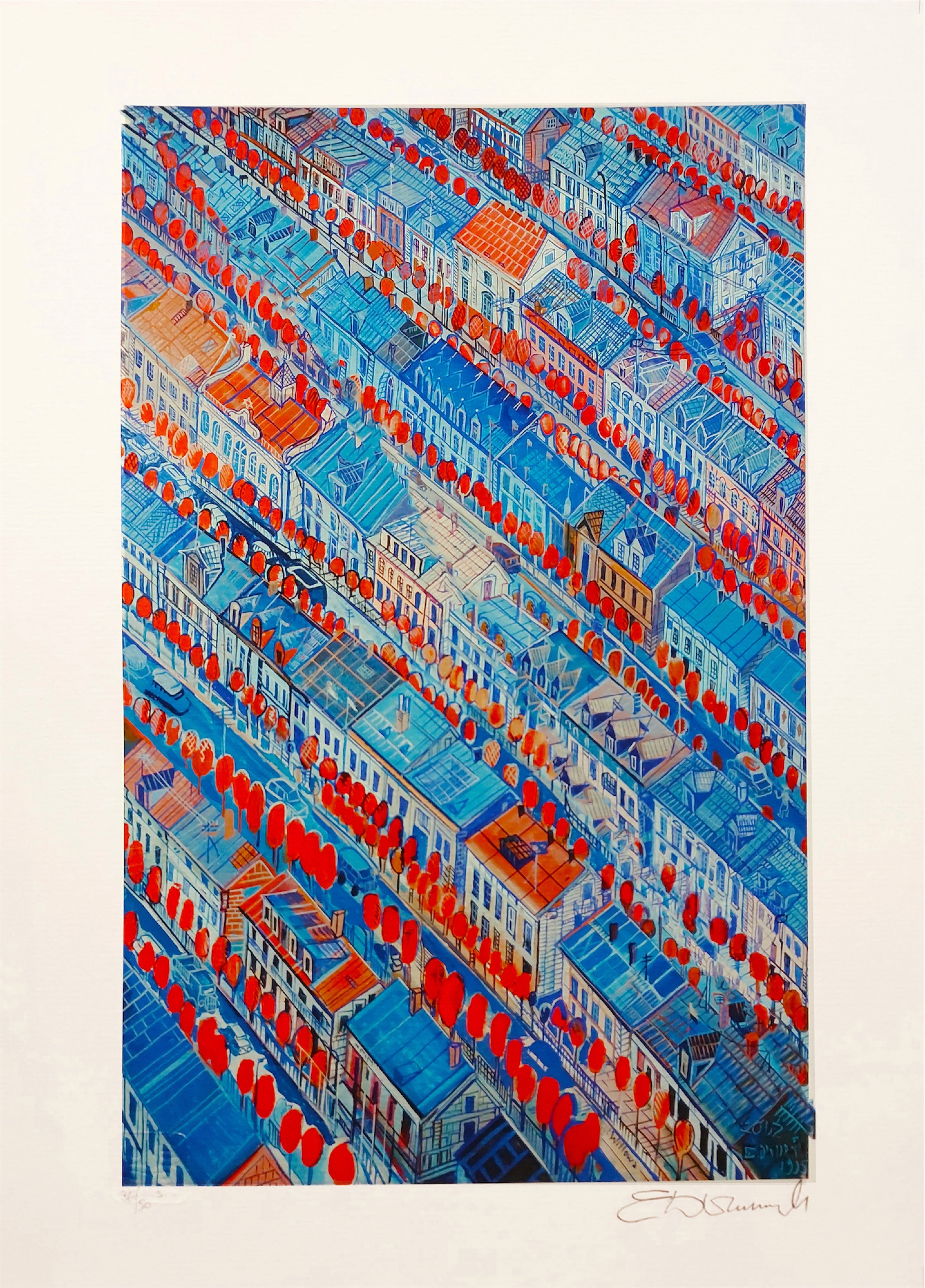 inkografia/papier, 25 cm x 36 cm (wymiary arkusza); 19 cm × 30 cm (wymiary odbitki); sygnatura artysty ołówkiem, p.d. E. Dwurnik; oznaczenie egzemplarza, l.d.: S 36/50; sucha pieczęć wydawcy (tłoczony napis);