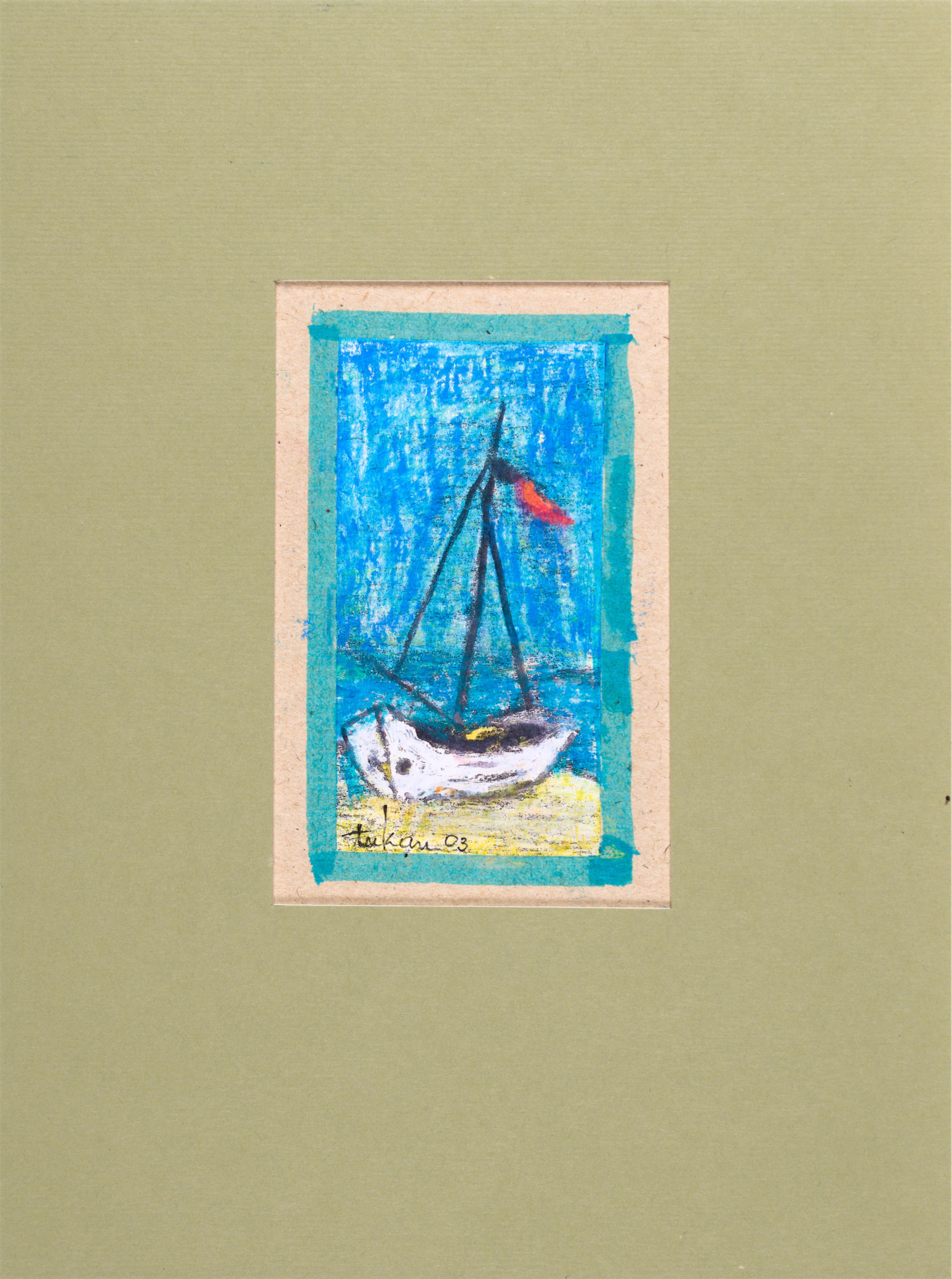 technika mieszana: tusz, akryl, gwasz, kredka, papier; 11,8 x 7,4 cm (w św. passe-partout);sygn. l. d.: tukan 03.