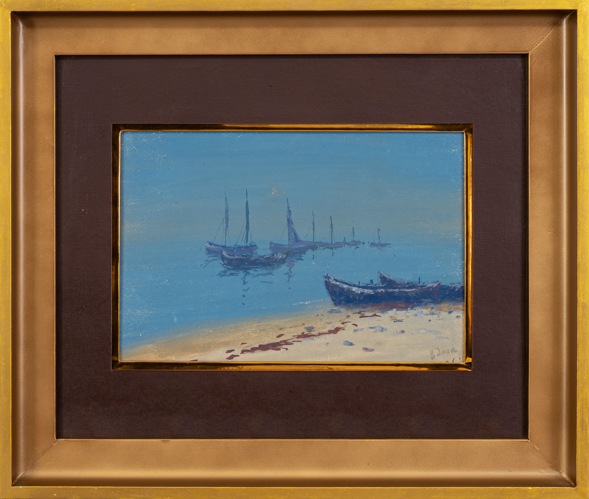Znany motyw w unikatowym, lirycznym wydaniu. Obrazy marynistyczne można określić jako wizytówkę twórczości malarza, szczególnie w okresie międzywojennym. Był to też czas prywatnych pobytów Jaxy-Małachowskiego nad Bałtykiem. Przedstawione dzieło zwraca uwagę gładką plamą koloru, która potęguje nostalgię i tajemniczość morskiego pejzażu. Zatarta linia horyzontu i puste łodzie tworzą interesującą płaszczyznę kompozycyjną.