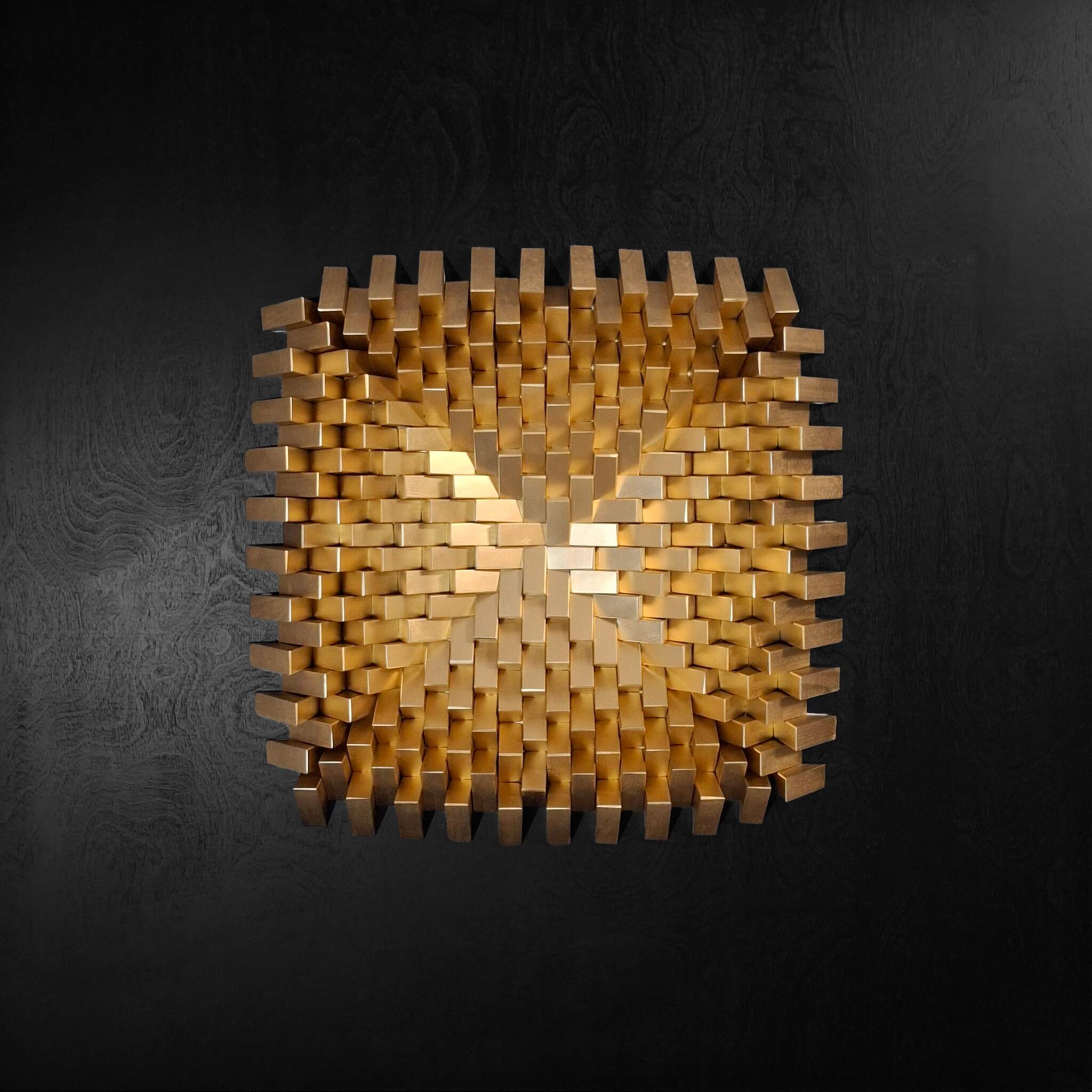 drewno, technika własna, płyta, 100 x 100 x 10 cm