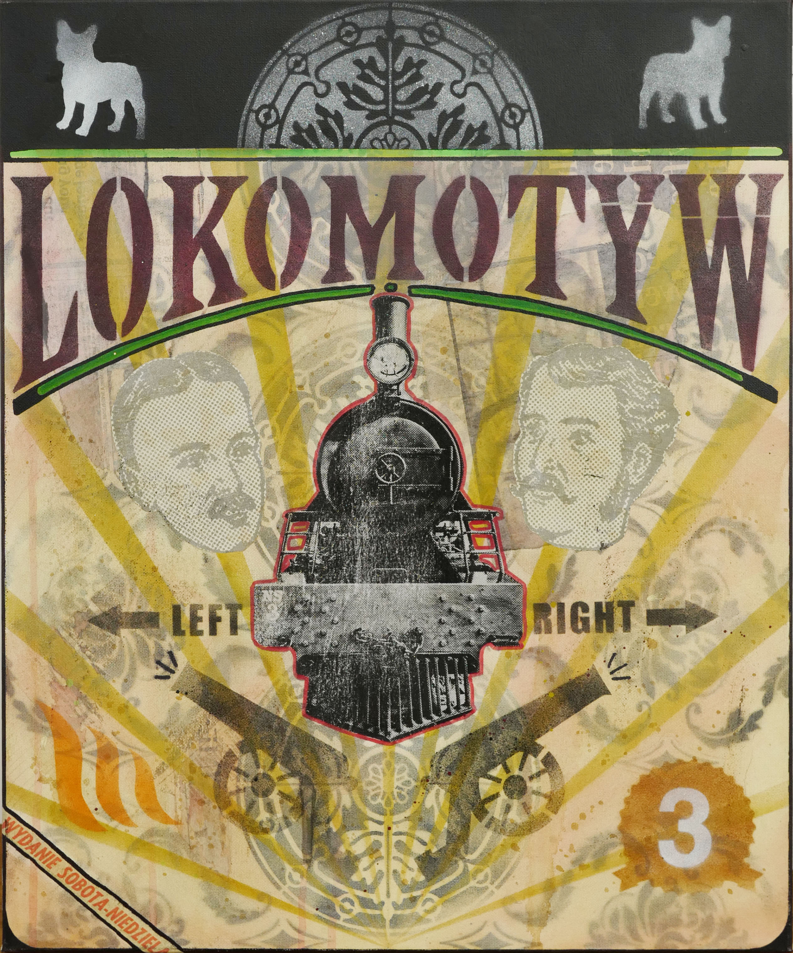 technika mieszana, płótno60 x 50 cmsygn. na odwrocie: MATEUSZ | RYBKA | 2013 \LOKOMOTYW | 60 X 50 / technika mieszana