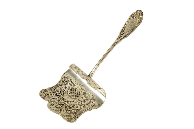 srebro, pr. 0,800, w. 140 g, dł. 21 cm, grawerowana, w stylu rokokowym