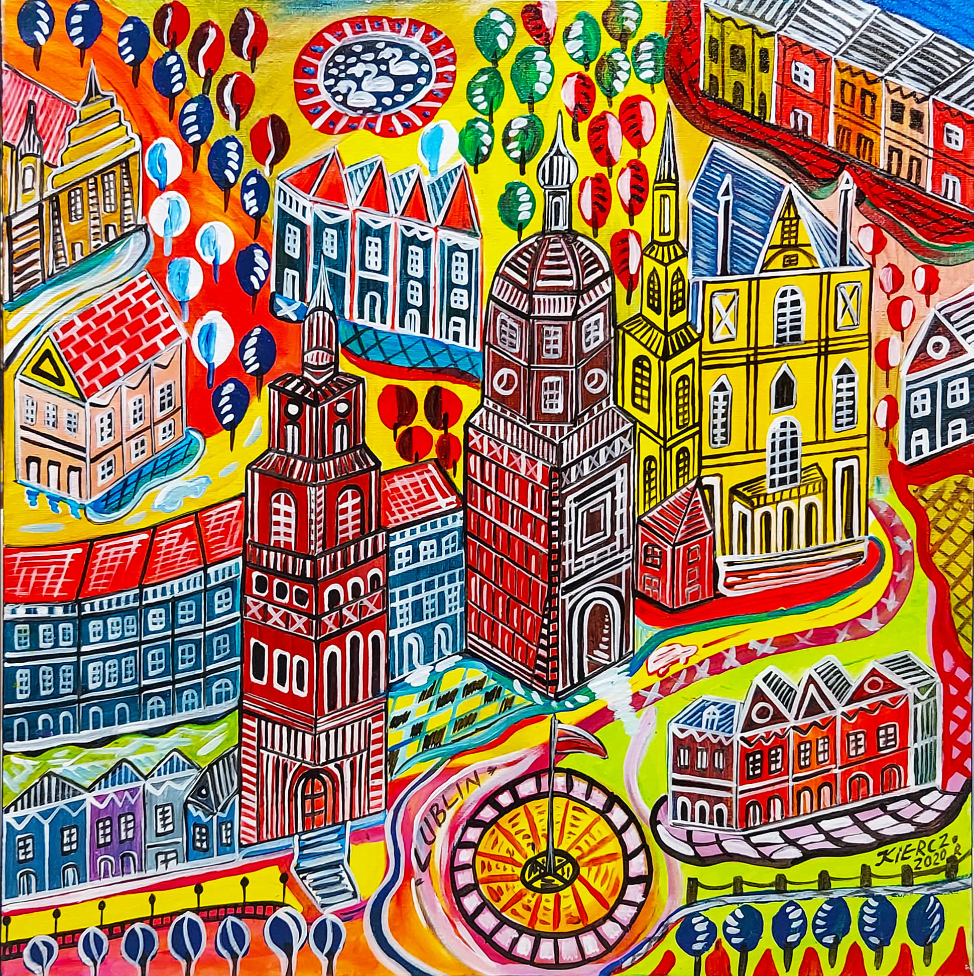 olej / akryl na płótnie, 50 x 50 cm;sygnowany i datowany na froncie, p.d.: KIERCCZ / 2020 R.;zatytułowany w kompozycji : LUBLIN;sygn., dat. I opisany na odwrocie