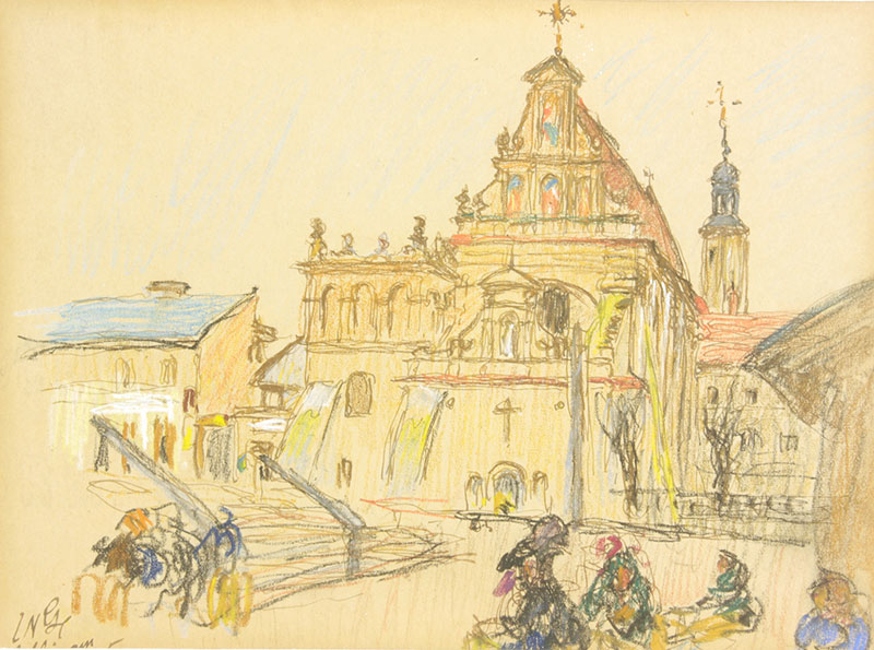 pastel, papier, 14,3 x 19,5 cm, sygn. i dat. l.d.: JNG / Marktplatz /...1915