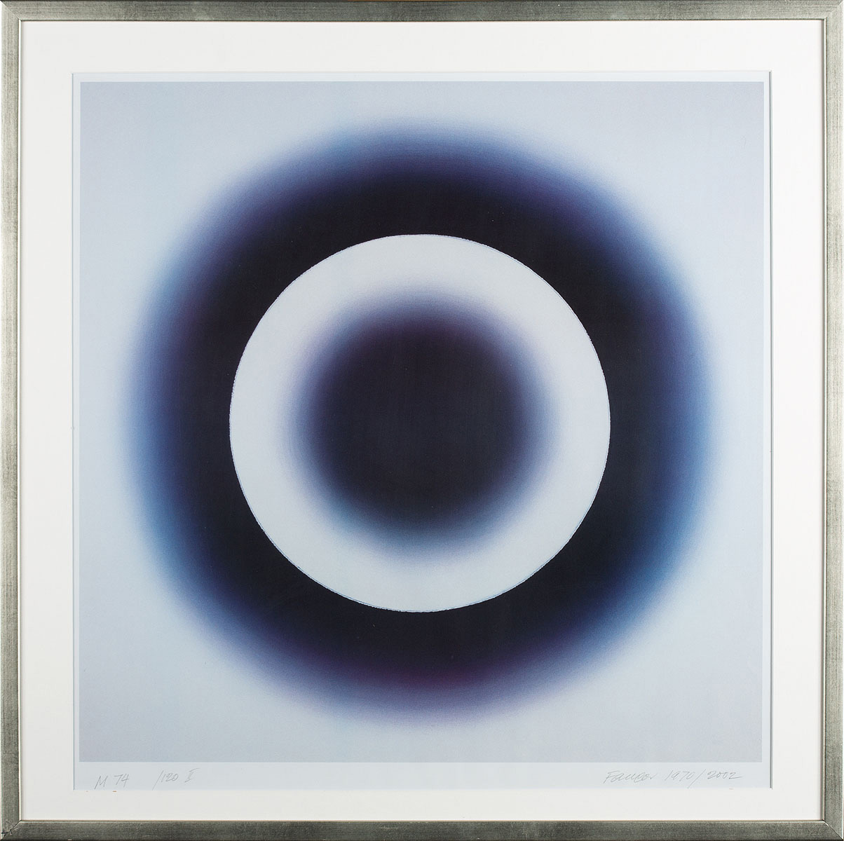 sygnatura, opis, datowanie autorskie; Oprawiony w ramę i passepartout. Wymiar z ramą 83x83cm.