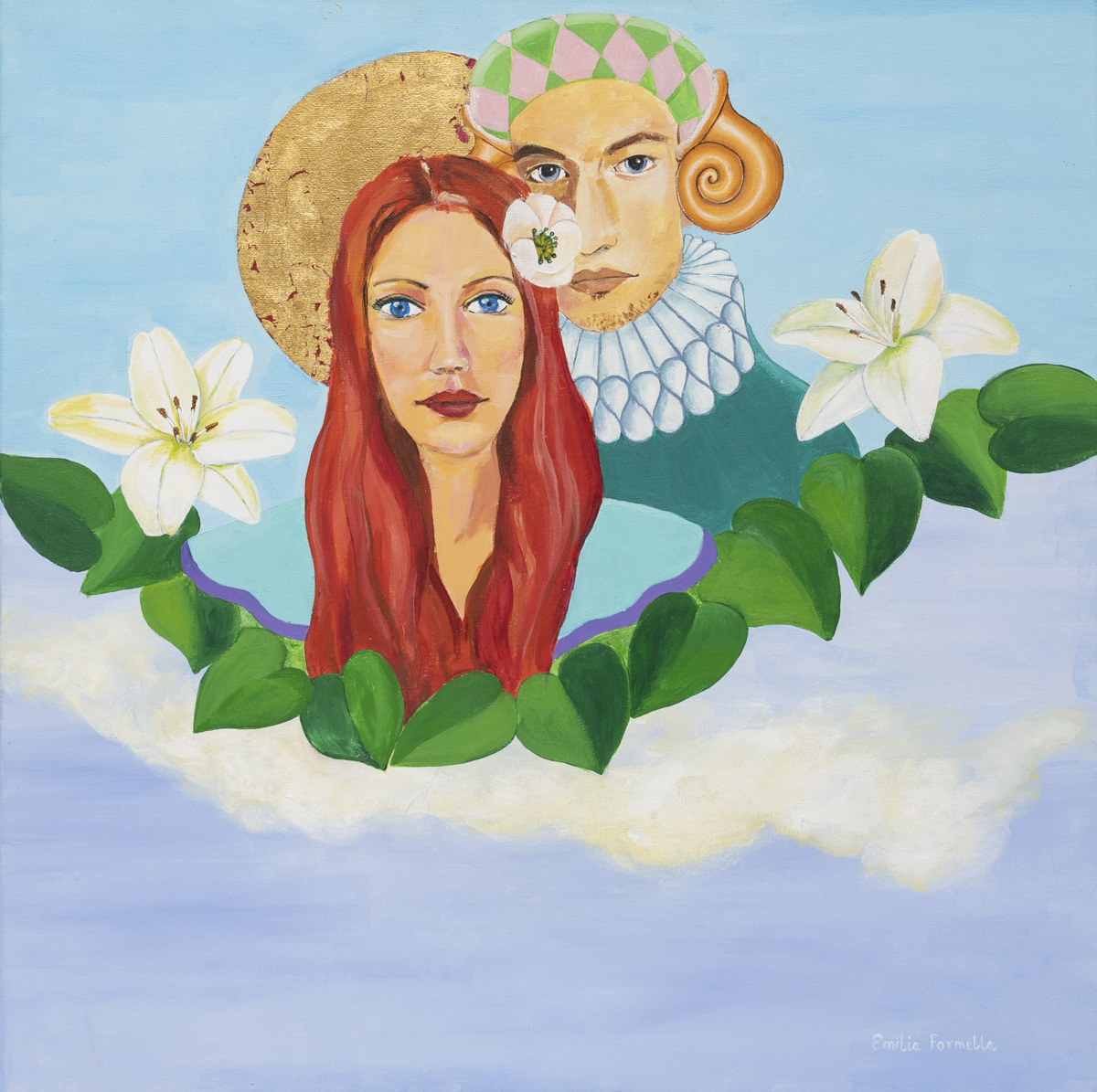 akryl, płótno, 60x60 cm,sygn. p.d.: Emilia Formella, opisany na odwrocie: Emilia Aleksandra Formella "Magiczny czas" 2017 akryl, złocenia