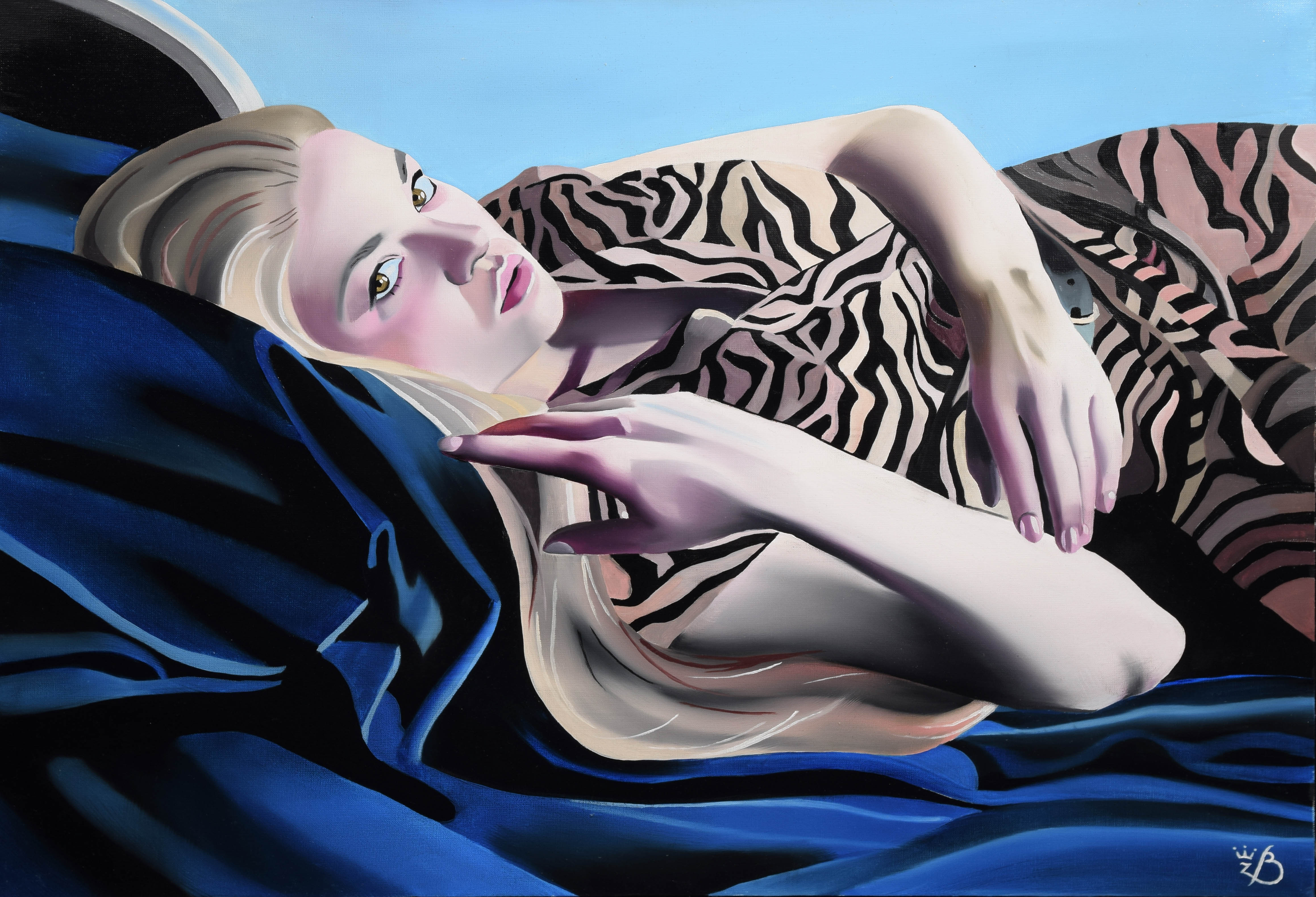 olej, płótno; 66 x 86 cm;sygn. p. d.: Z.B.;opisany na odwrocie: Z. Błażko / "Maja w błękicie" / 2021r. Warszawa.