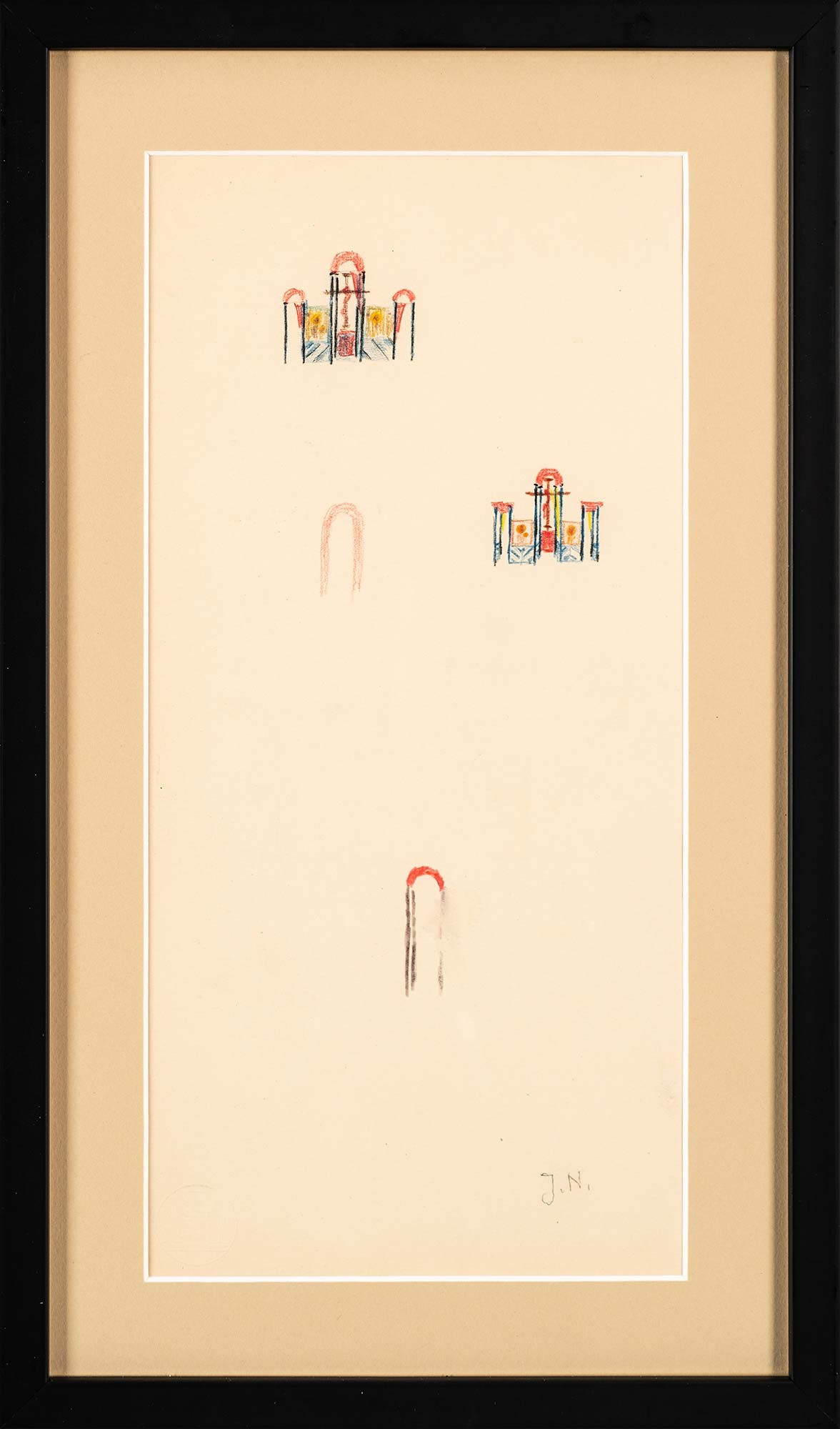 kredka, technika mieszana, papier; 34 x 16 cm w św. p-p.;sygn. p. d.: J. N. (ołówkiem)okrągła pieczęć tłoczona l. d.