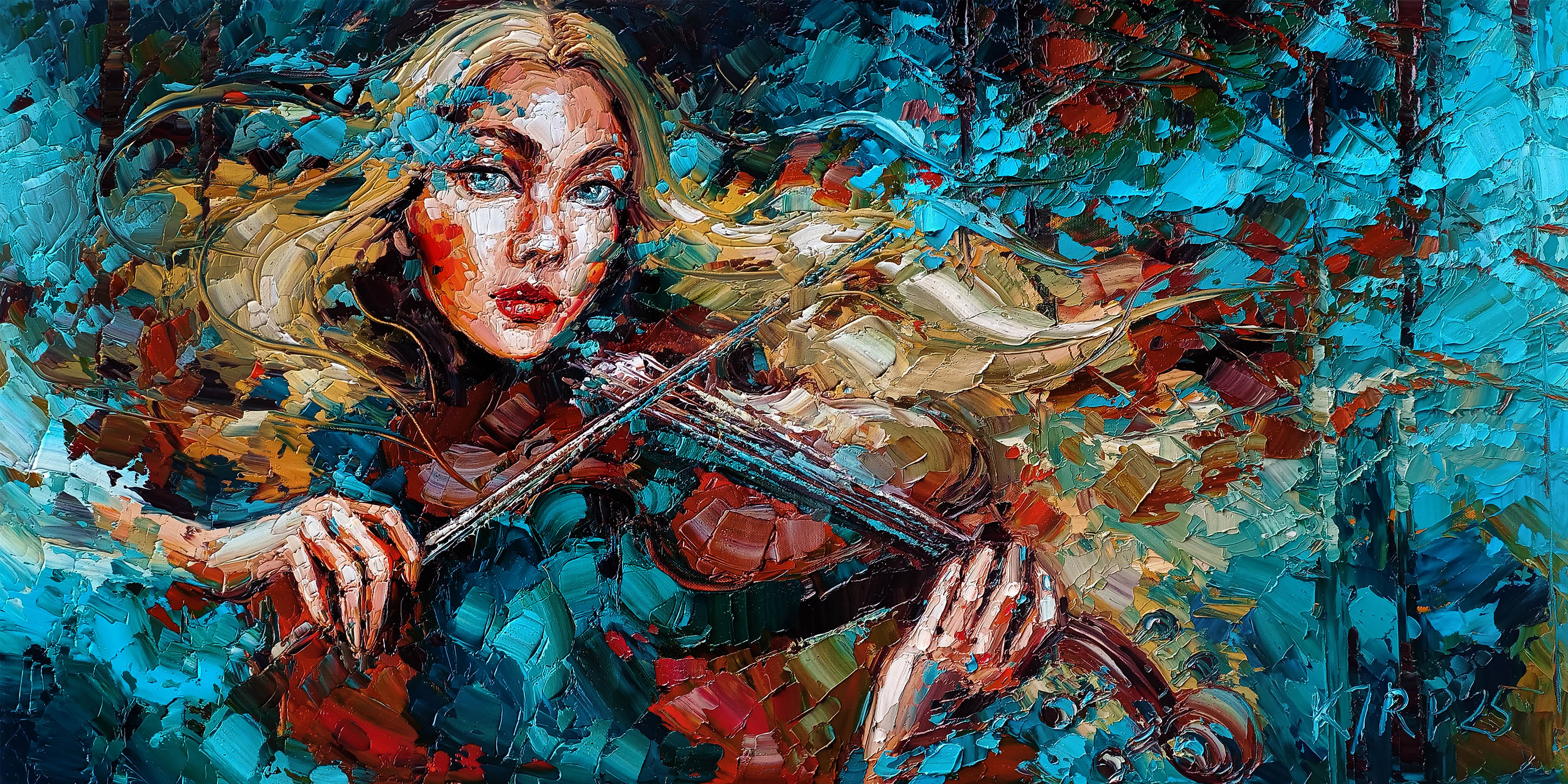 olej, płótno, 50 x 100 cm,sygnowany p.d. oraz opisany na odwrocie: '"MALOWANA SYMFONIA" | Krystyna Róż-Pasek | 2025'