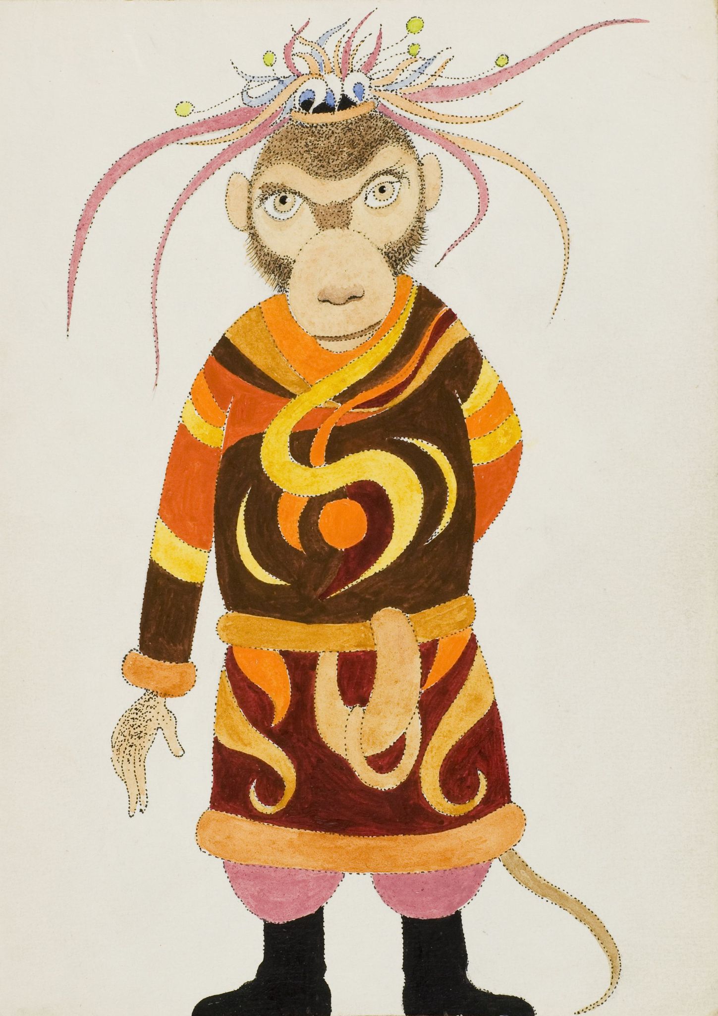 na odwrotnej stronie opis: "Przygody Sindbada Żeglarza"/Małpa. Proj. do spektaklu "Przygody Sindbada Żeglarza", 1962, reż. J. Güntner, wg. B. Leśmian.