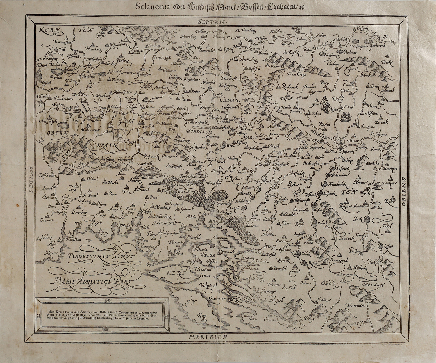 Jedna z najstarszych map terenów Bałkanów. Obejmuje ziemie od południowej Austrii poprzez Słowację aż do Chorwacji z morzem a na na wschodzie Bośnia. Wiele miejscowości ma nazwy tylko podobne do dzisiejszych. Często te miasta występują tu po raz pierwszy. Mapa została wydana w Bazylei ok. 1560 r. Na odwrocie ozdobny drzeworyt w stylu renesansowym oraz tytuł mapy po niemiecku. Rzadkość.