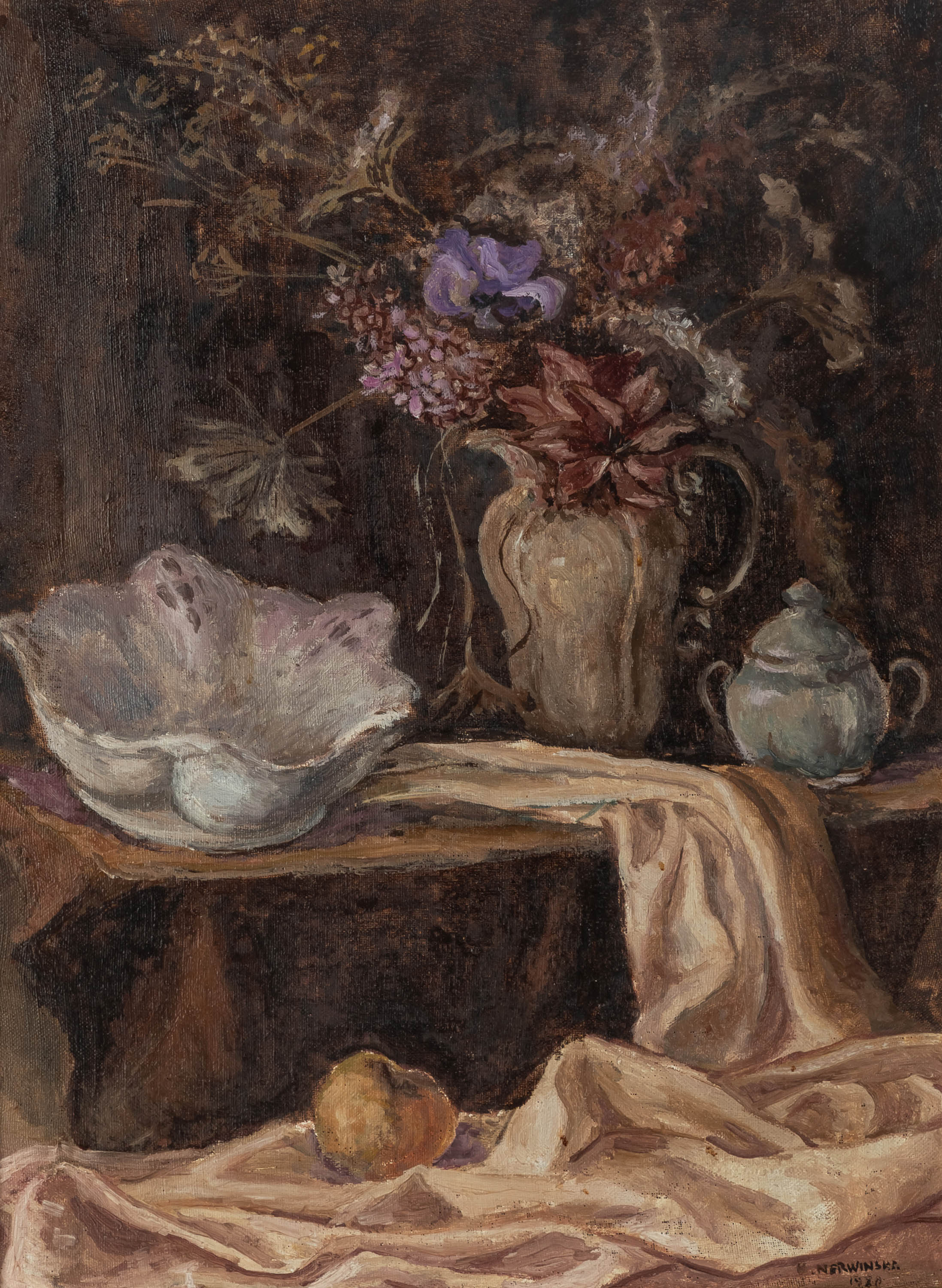 olej, płótno, 61 x 46 cm,sygn. i dat. p.d.: K. NERWIŃSKA / 1980,na odwrocie naklejka wystawowa z warszawskiej Spółdzielni Pracy Artystów Plastyków "Plastyka" z 1980 r.