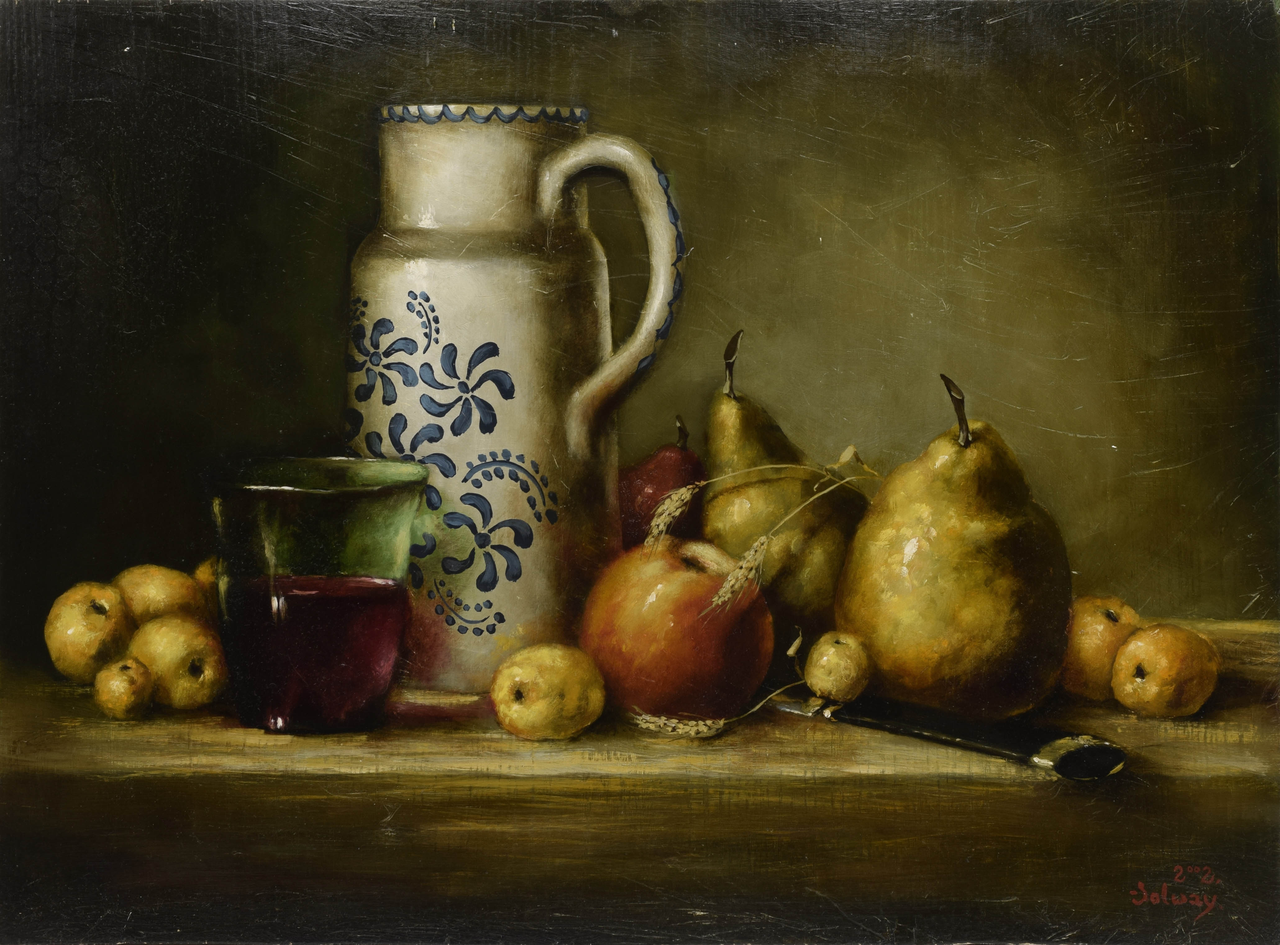 olej, deska; 44 x 60 cm;sygn. i dat. p. d.: 2002. / Solway.;na odwrocie opis autorski: 2002 R. / HANNA SOLWAY / "MARTWA NATURA" / OLEJ. / PL.