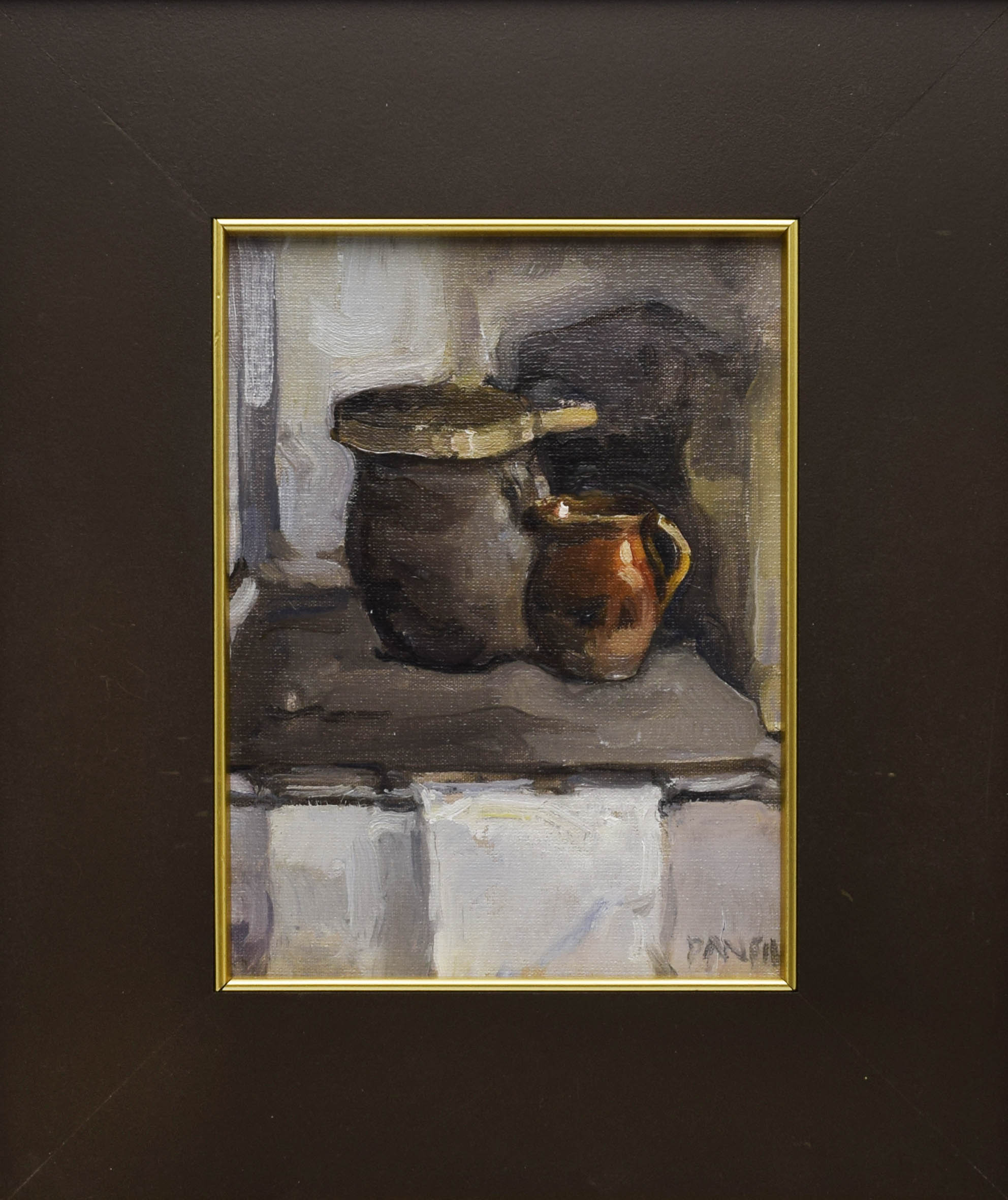 olej, płótno naklejone na tekturę; 20 x 15 cm (w świetle passe-partout);