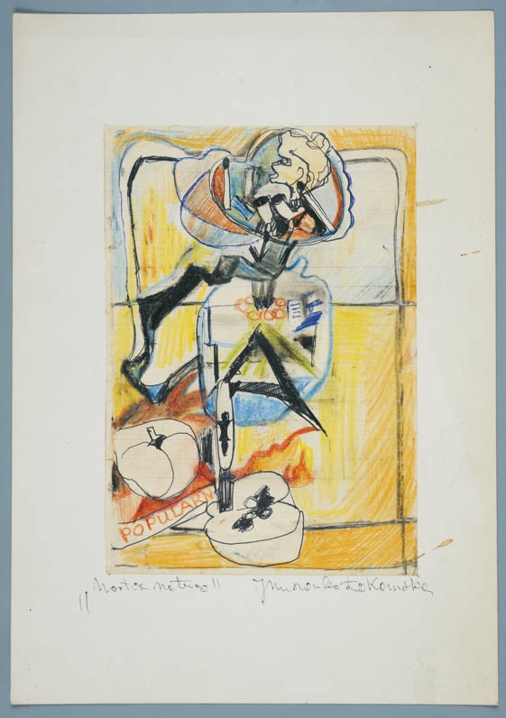 kredka, długopis, papier; 21 x 14,5 cm;sygn. pod kompozycją p. d.: JMuszanka Łakomska; l. d. tytuł.* opłata droit de suite