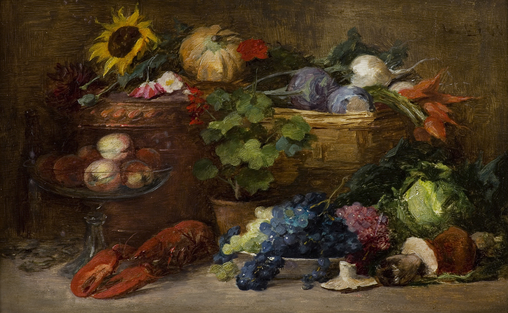 olej, deska mahoniowa fazowana, 21 x 32,5 cm sygn. p.g.: L. Eibl na odwrocie czarną kredką: 33 x 22 […] | Pn Sa ponadto centralnie umieszczony, przeciwnie do kompozycji, nieczytelny napis oraz poniżej liczby: […] 30 1/2