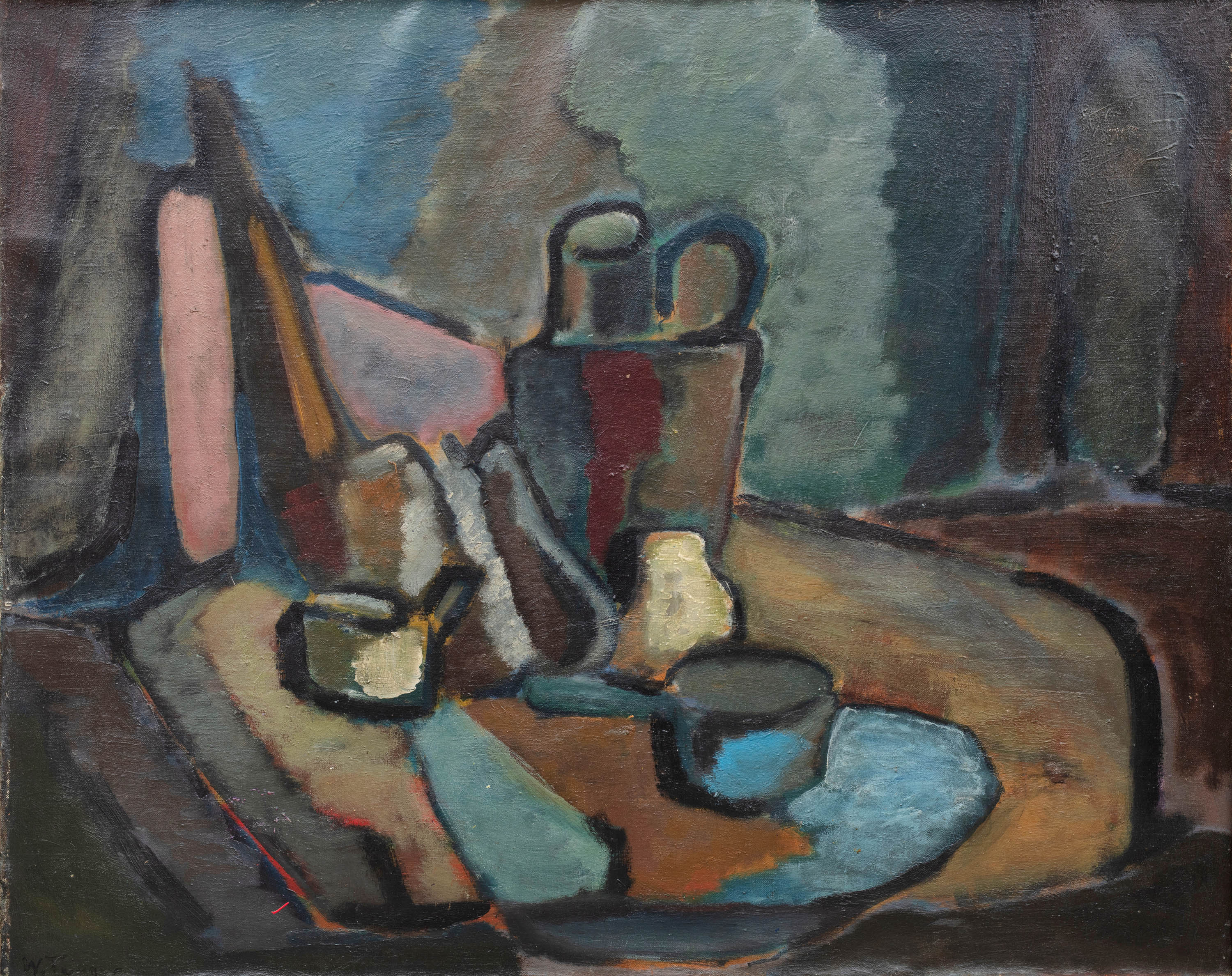 olej, płótno, 60 x 75,5 cm,sygnowany l.d.: 'W. Fangor' oraz opisany na odwrocie: 'WOJ. FANGOR/mort. natura'