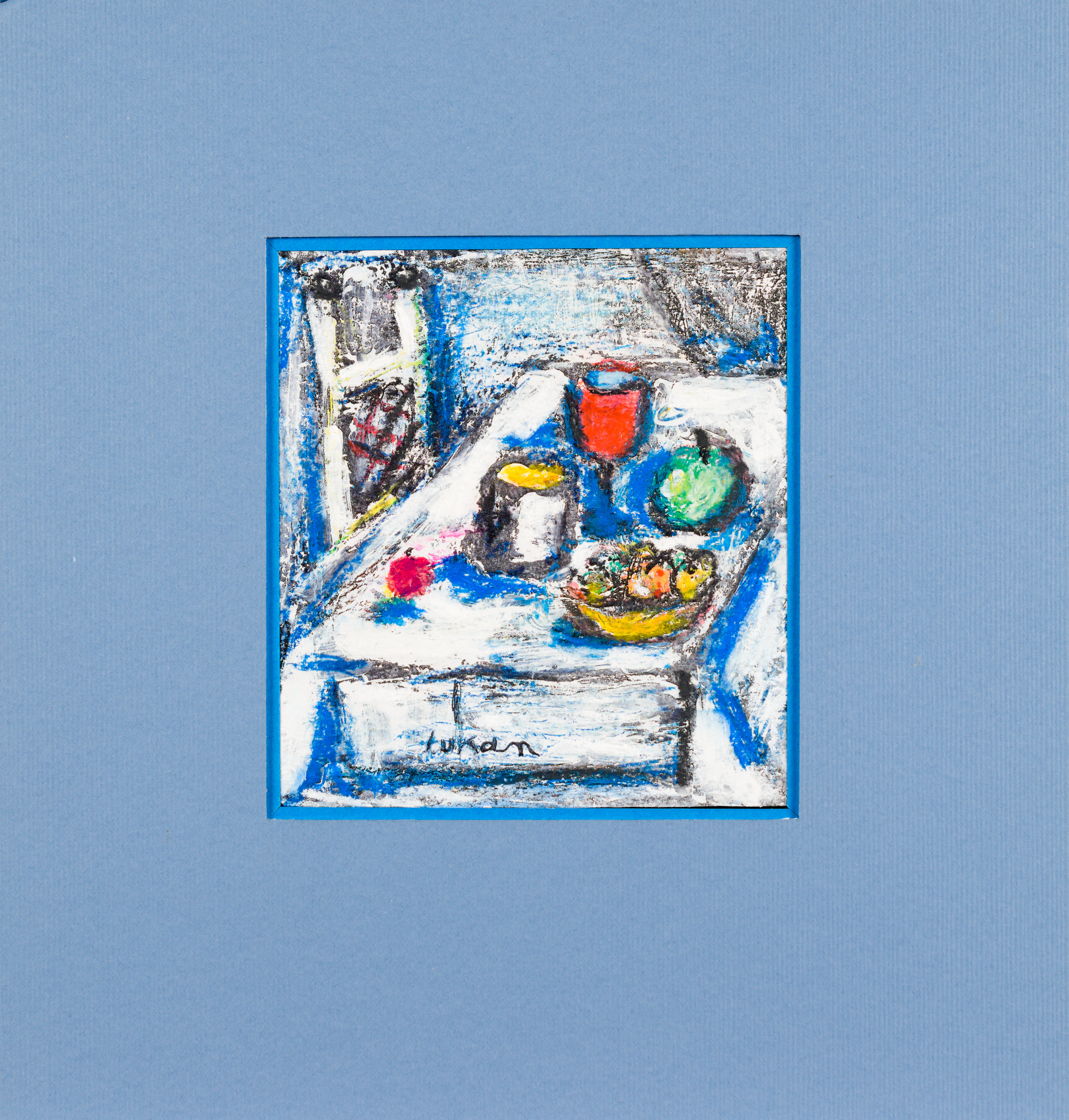 technika mieszana: tusz, akryl, gwasz, kredka, papier; 12,4 x 11,7 cm (w św. passe-partout).sygn. śr. d.: tukan.