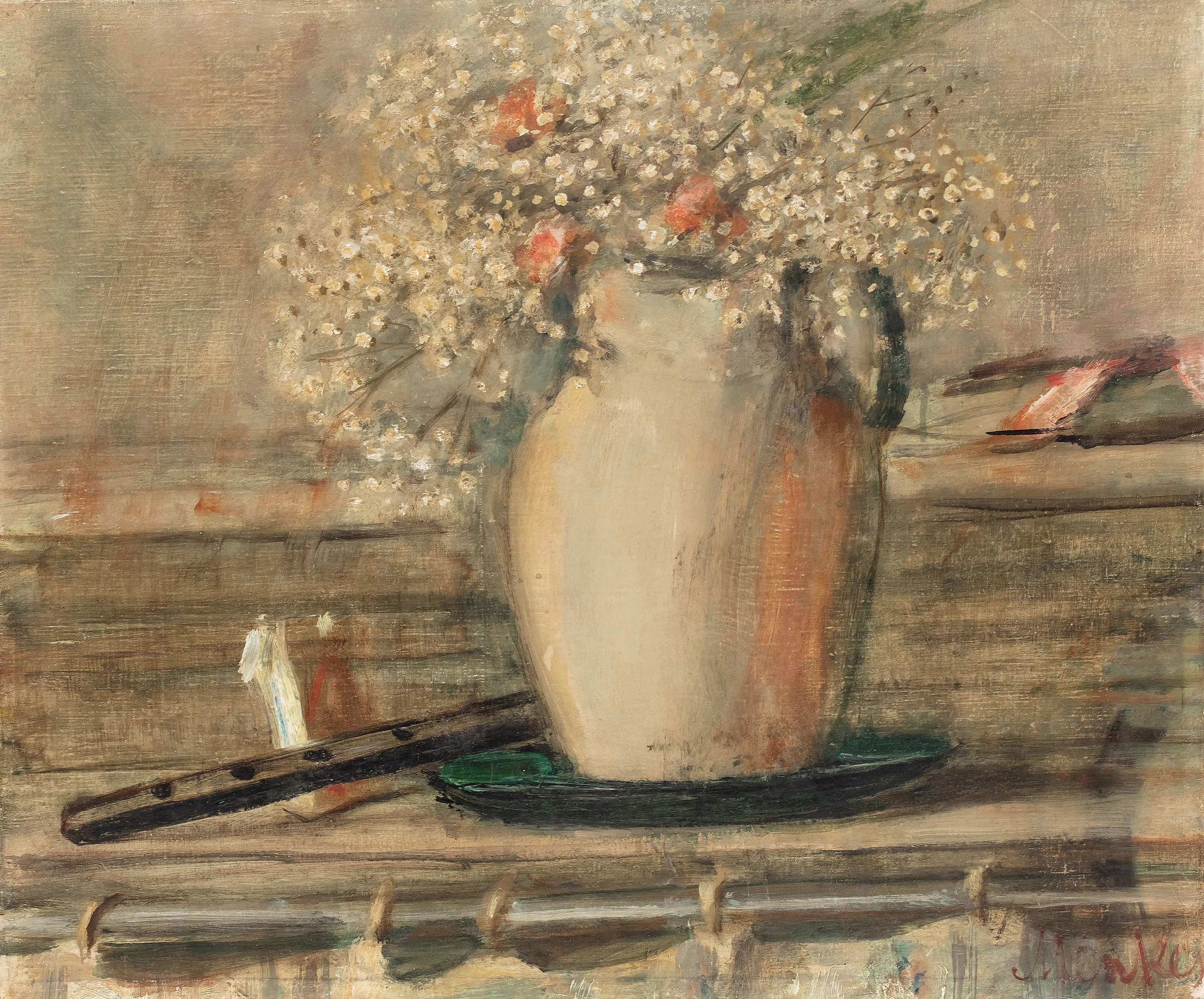 Martwa natura z kwiatami i fletem, l. 20–30 XX w.