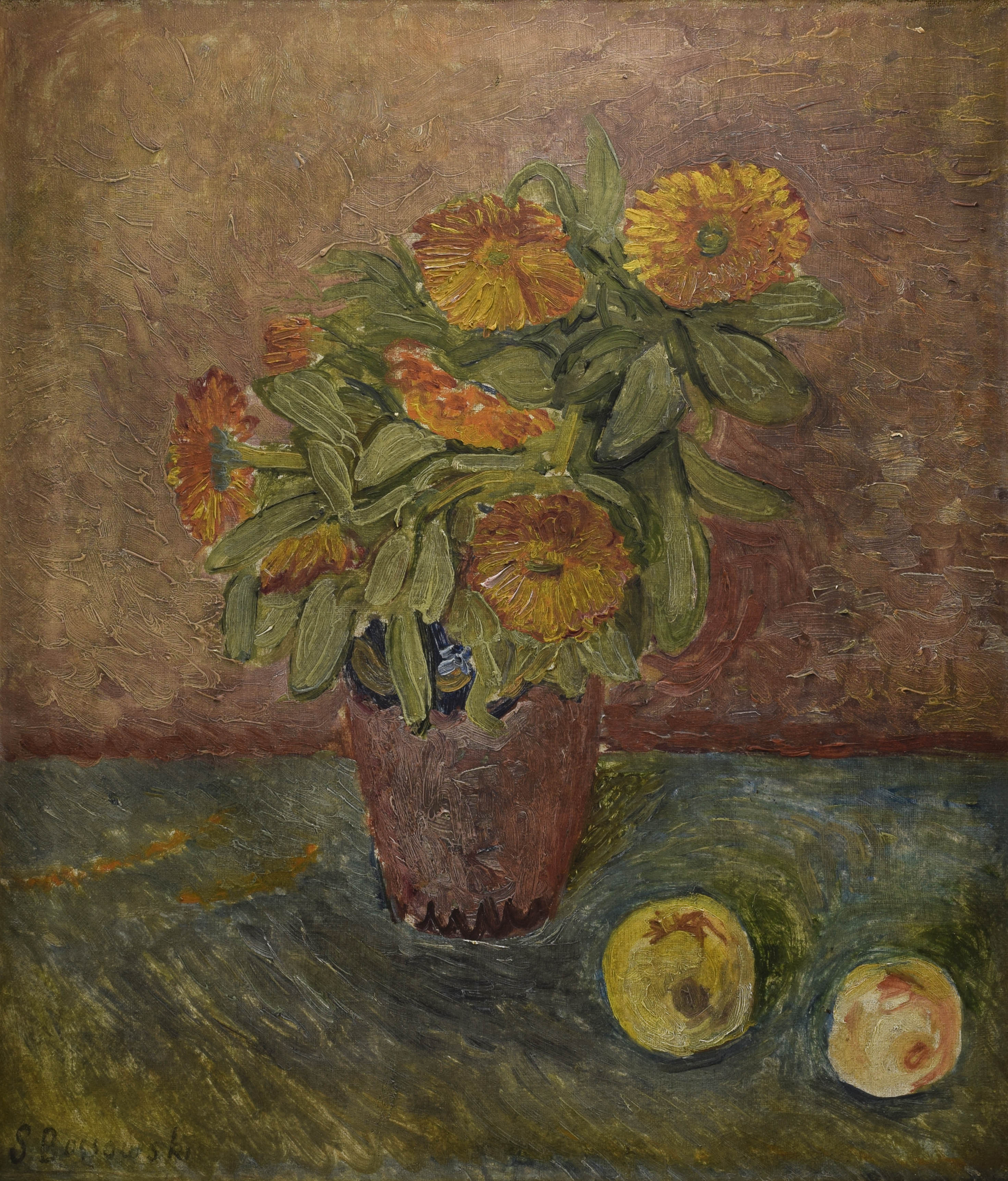 Martwa natura z kwiatami i owocami