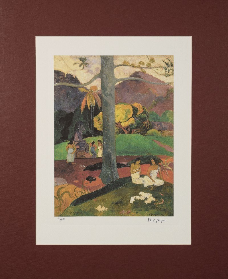 W idyllicznym krajobrazie otoczonym górami grupa kobiet czci Hinę, boginię księżyca. Na pierwszym planie dziewczyna gra na flecie. Po lewej stronie, rozdzielona pniem wysokiego drzewa, które dzieli kompozycję na dwie części jak zawias, inna grupa tańczy wokół bożka. Gauguin wyjechał na Tahiti w 1891 roku, mając nadzieję na znalezienie artystycznej inspiracji wśród ludów pierwotnych, których rozwój nie został dotknięty przez cywilizację zachodnią. Jednak wszystko, na co natrafił, to ślady chwalebnej przeszłości, skazanej już na wyginięcie. Mata Mua (W dawnych czasach) to hymn na cześć naturalnego stylu życia, którego Gauguin tak żarliwie poszukiwał. Namalowany w jasnych, płaskich kolorach i odrzucający wszelkie roszczenia do naturalizmu, jest również elegią na cześć utraconego Złotego Wieku.