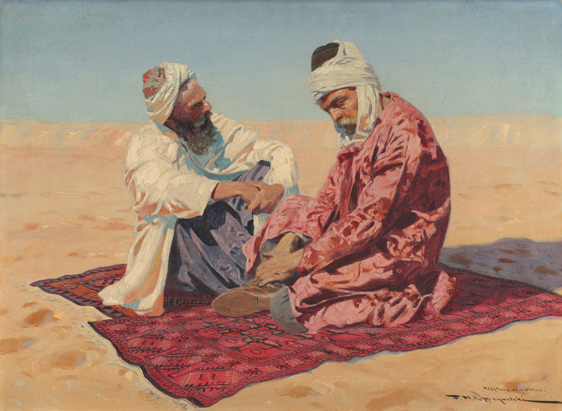 olej, płótno55,5 x 75,5 cm; 65,5 x 85,5 cm (z oprawą)Sygn. p.d.: "F. M. Wygrzywalski"Opisany p.d.: "Medytacja po modlitwie"