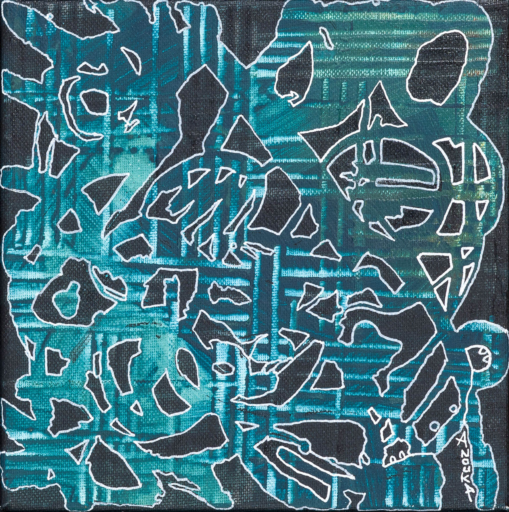 akryl i tusz na płótnie, 20 x 20 cm, sygn.
