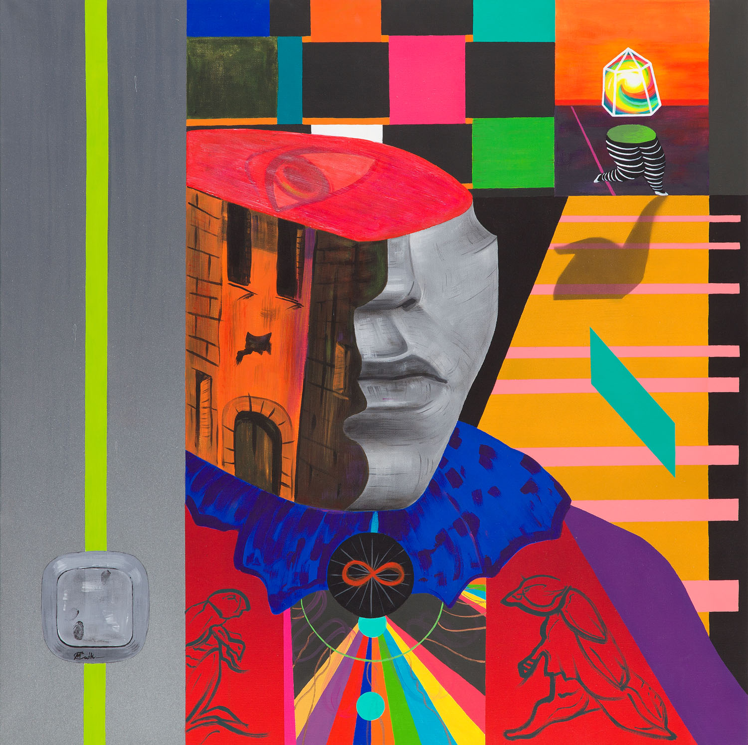 opisany na odwrociu: '"MÉTAMORPHOSE" | MIXED MEDIA : | ACRYLIC, MEDIUM GEL, SPARY PAINT | STREET ART CITY | LURCY-LÉVIS, FRANCE | HÔTEL 128, ROOM 10? | MĆwik | SUMMER 2019'