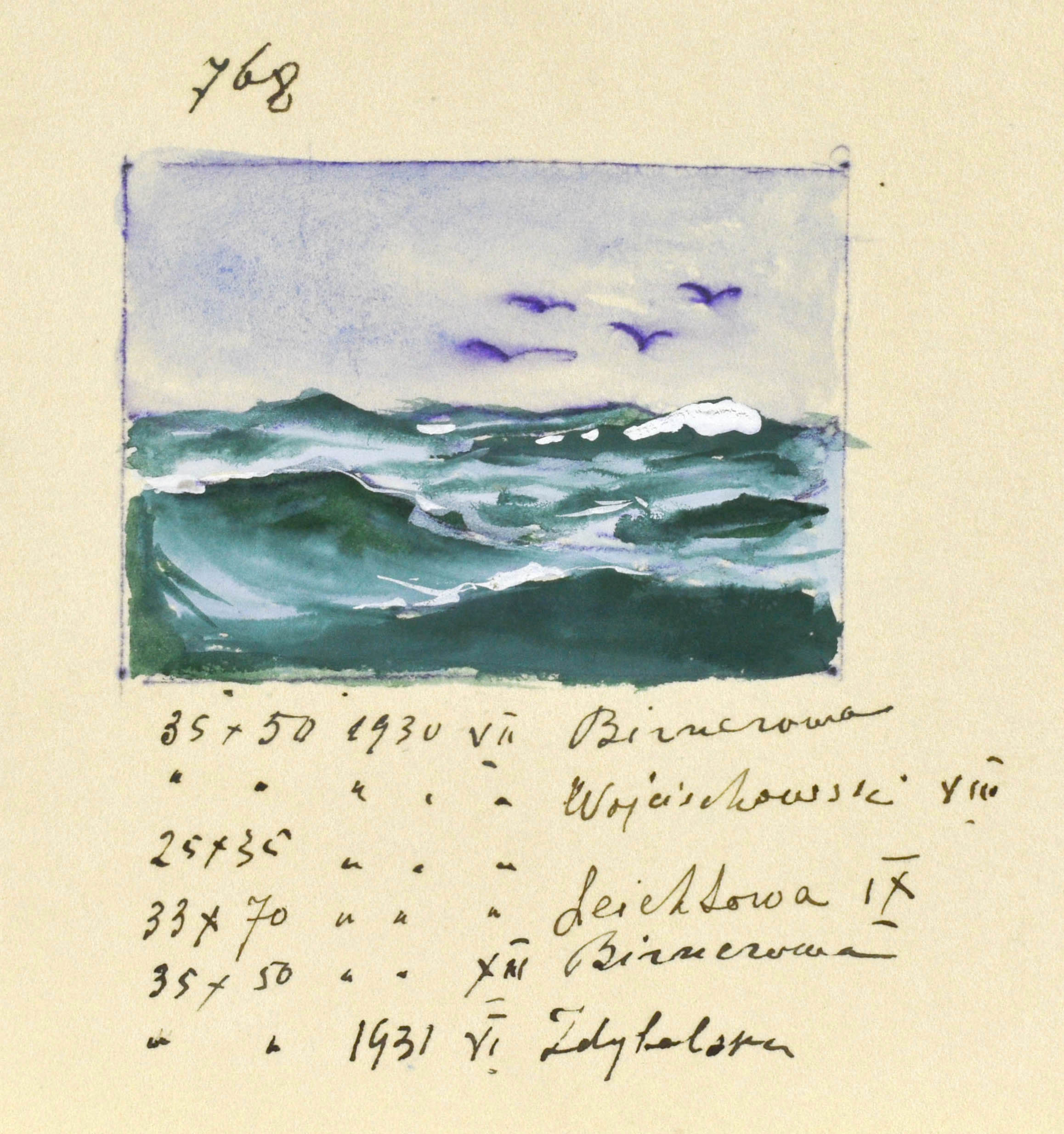 Na odwrocie rysunek: Morze, 1930/1931 (4,9 x 6,7 cm) również opisany autorsko.