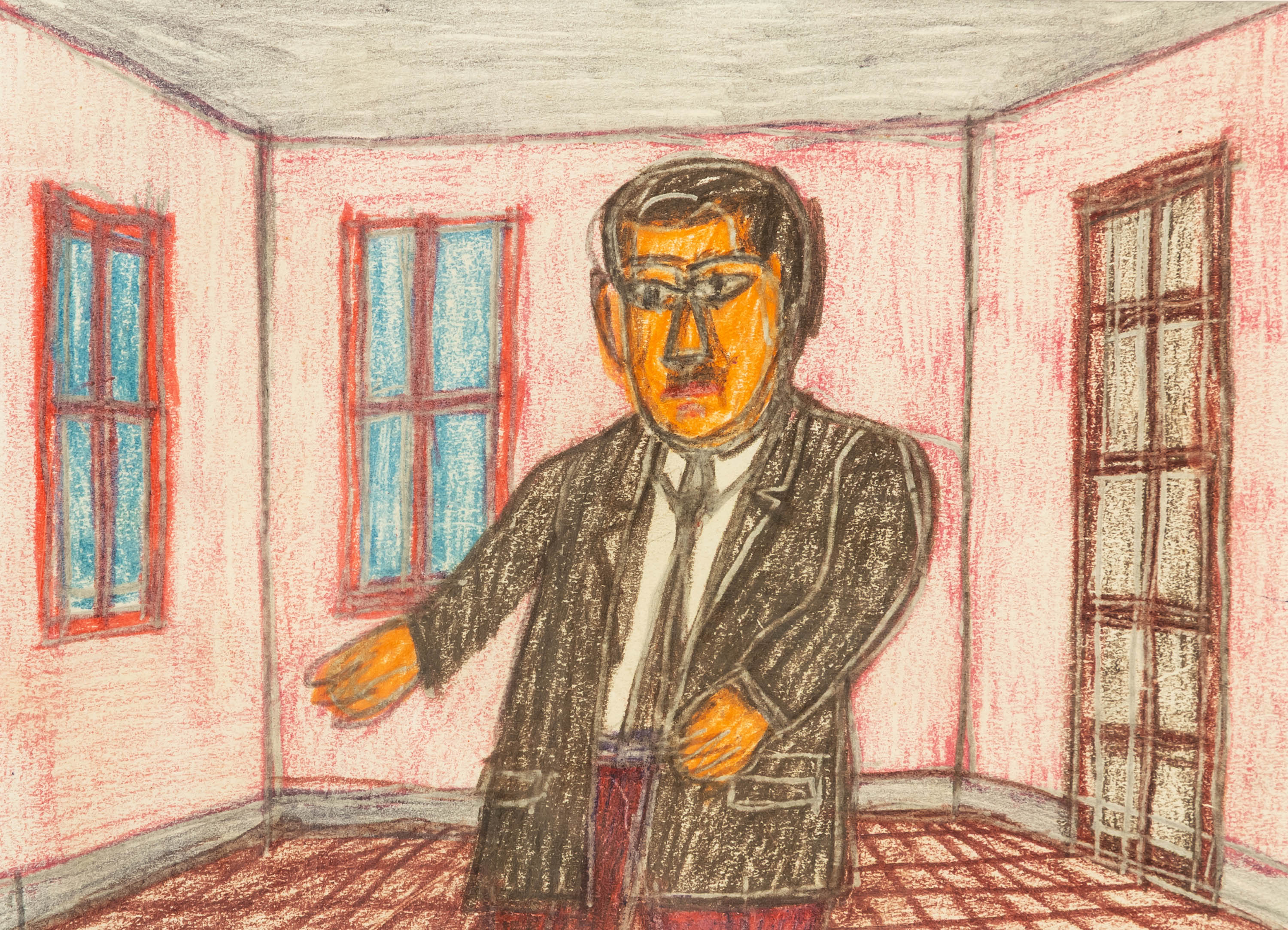 kredki, ołówek, papier, 11,5 x 16 cm w świetle passe-partout, na odwrocie okrągła pieczęć: NIKIFOR MATEJKO / ARTYSTA MALARZ / KRYNICA-WIEŚ oraz napis ołówkiem: NAKRHCRWIES PANIKAZPANEPOŁ / 100 zł