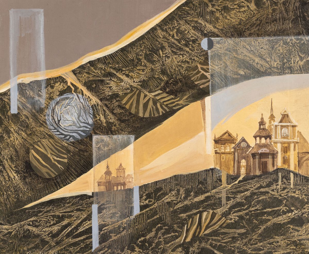 Akryl, płótno; 50 x 61 cmSygnowany l.d.: Głowniak' 89; na odwrocie: Krystyna Głowniak / Miasteczko w górach / Lublin 89