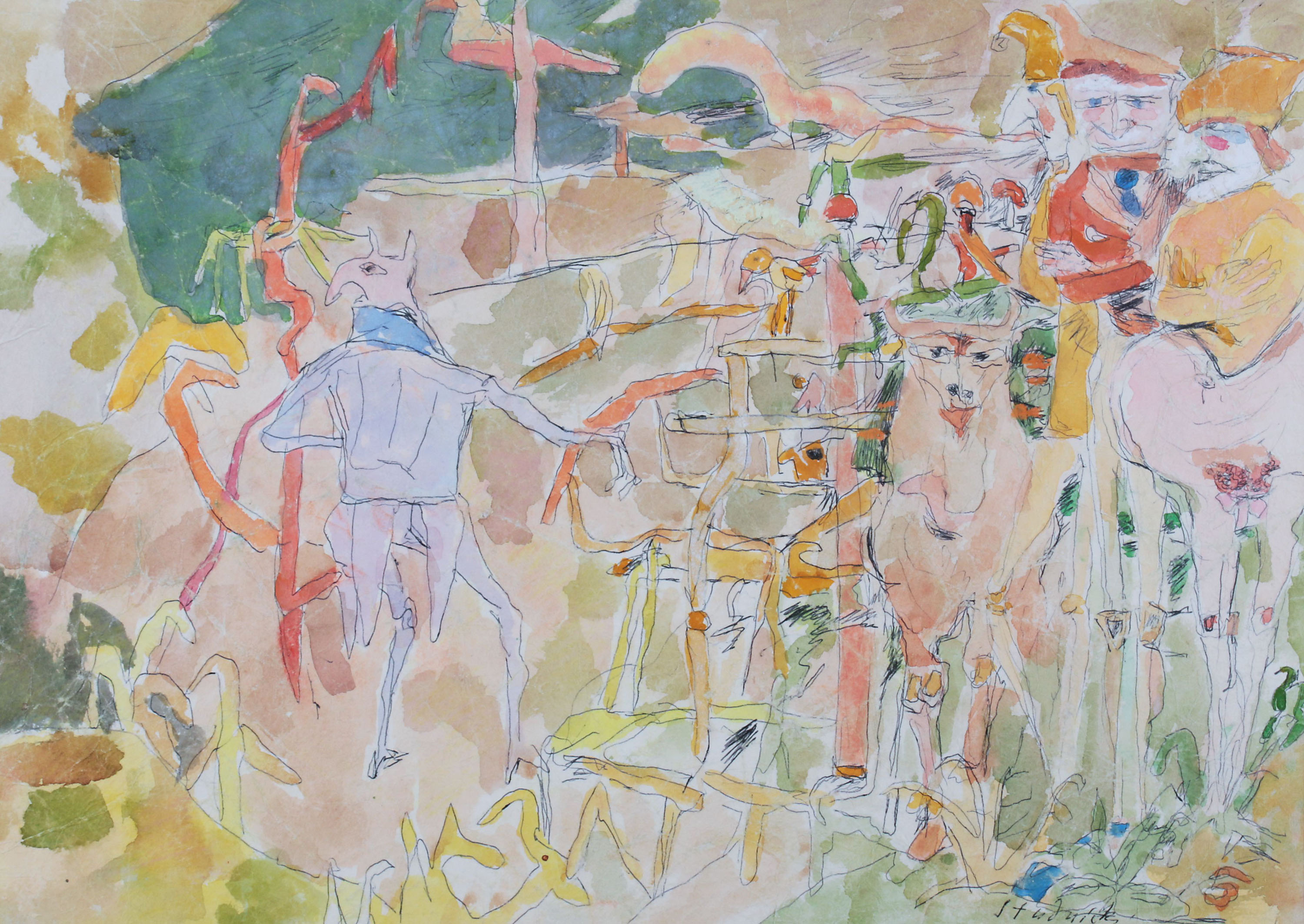 akwarela, tusz, papier, 28 x 40 cm w świetle passe-partout