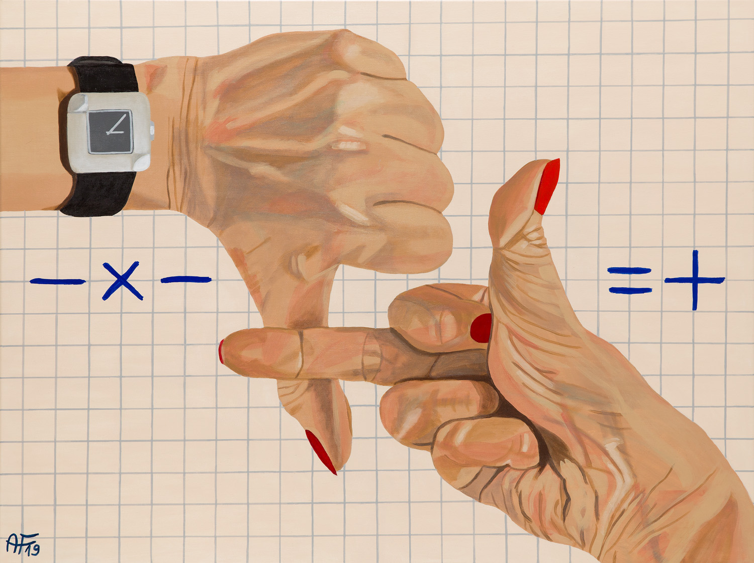 akryl/płótno, 90 x 120 cmsygnowany i datowany l.d.: 'AF 19'na odwrociu opisany: 'Anna Franczuk | "MINUS PLUS" Akryl na płótnie | 90 x 120 cm | 2019 r.'