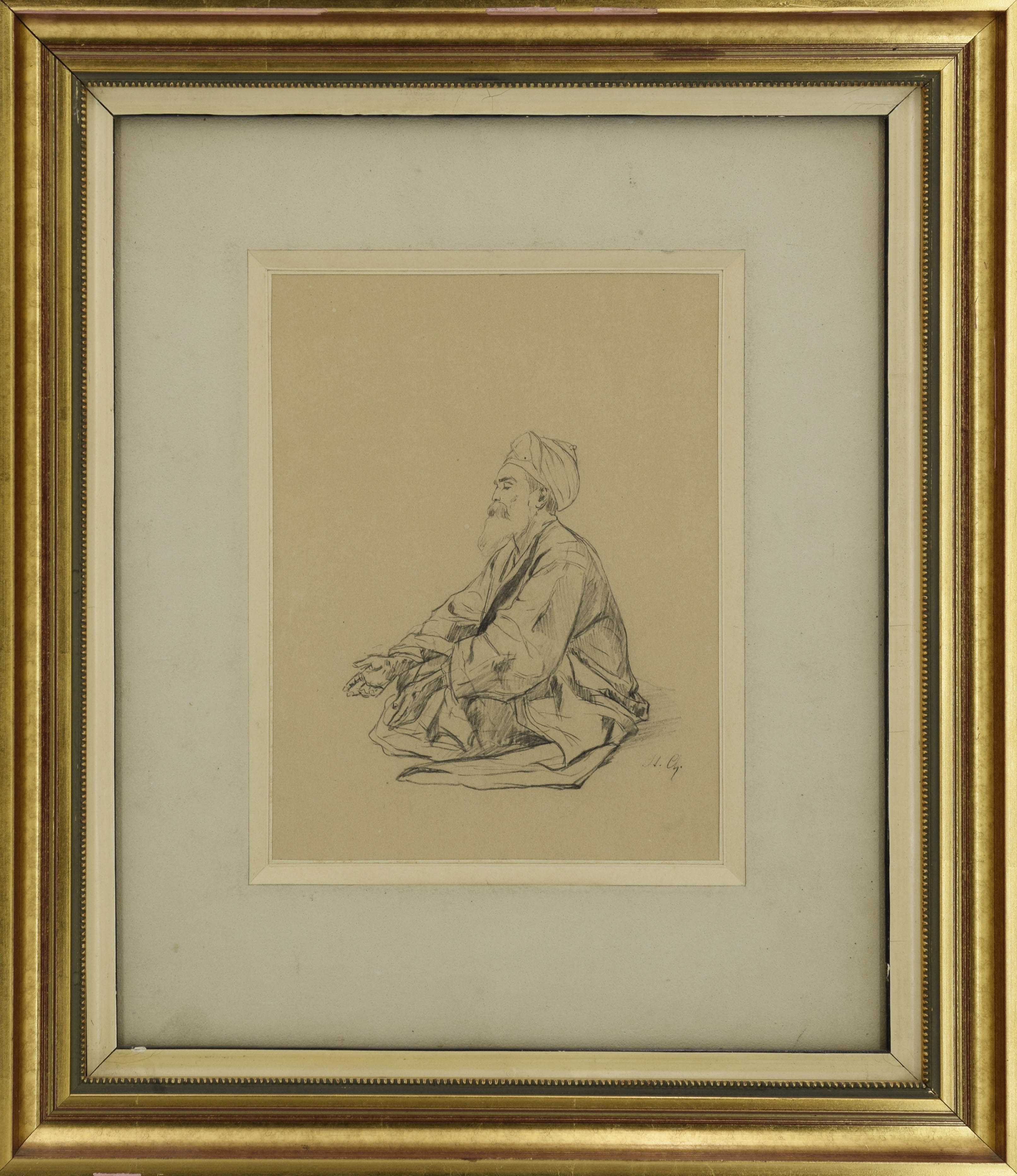 ołówek, papier; 21 x 16 cm (w świetle passe-partout);
