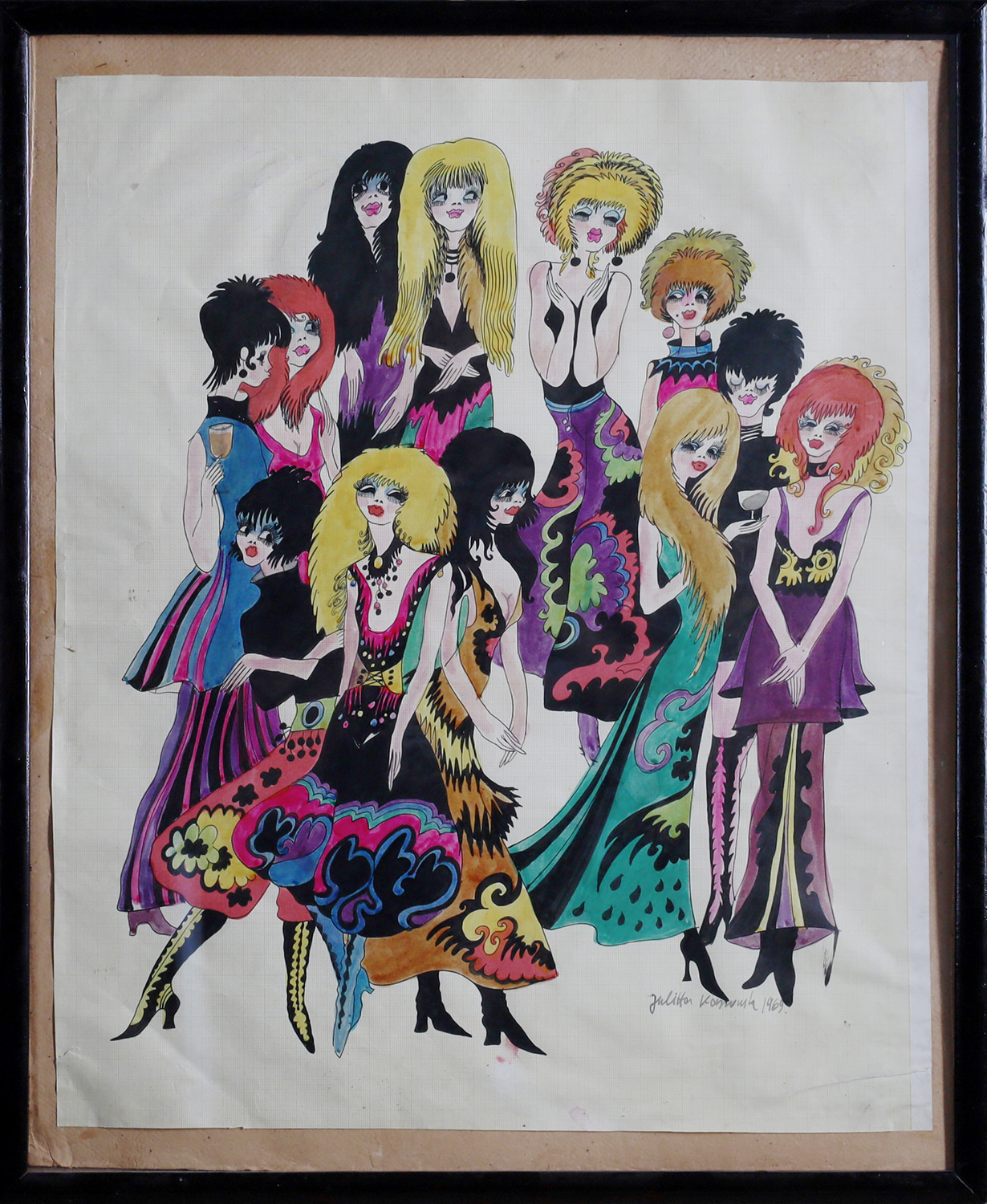 technika mieszana (piórko, tusz, akwarela), papier, 50,2 x 41,7 cm,sygn. p.d.: Julitta Karwowska 1969