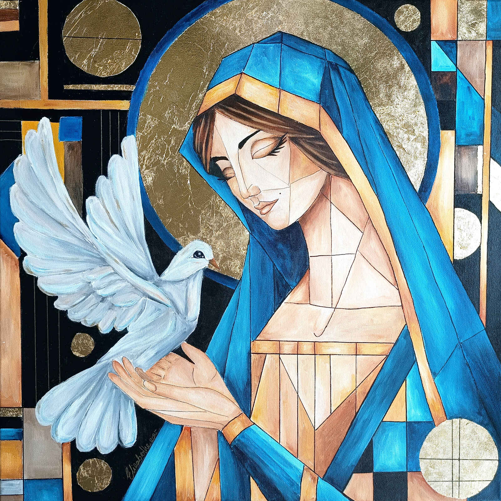 akryl, szlagmetal, płótno, 70 x 70 cm