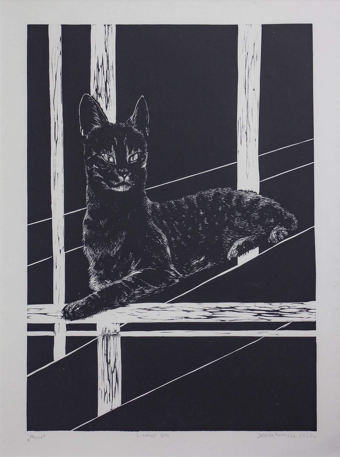 linoryt, papier, 8/10, 39,5 x 29,3 cm (w świetle passe partout), 50 x 40 cm (oprawa), sygn. p.d.: Jaśmina Kowalczyk 2020 r.