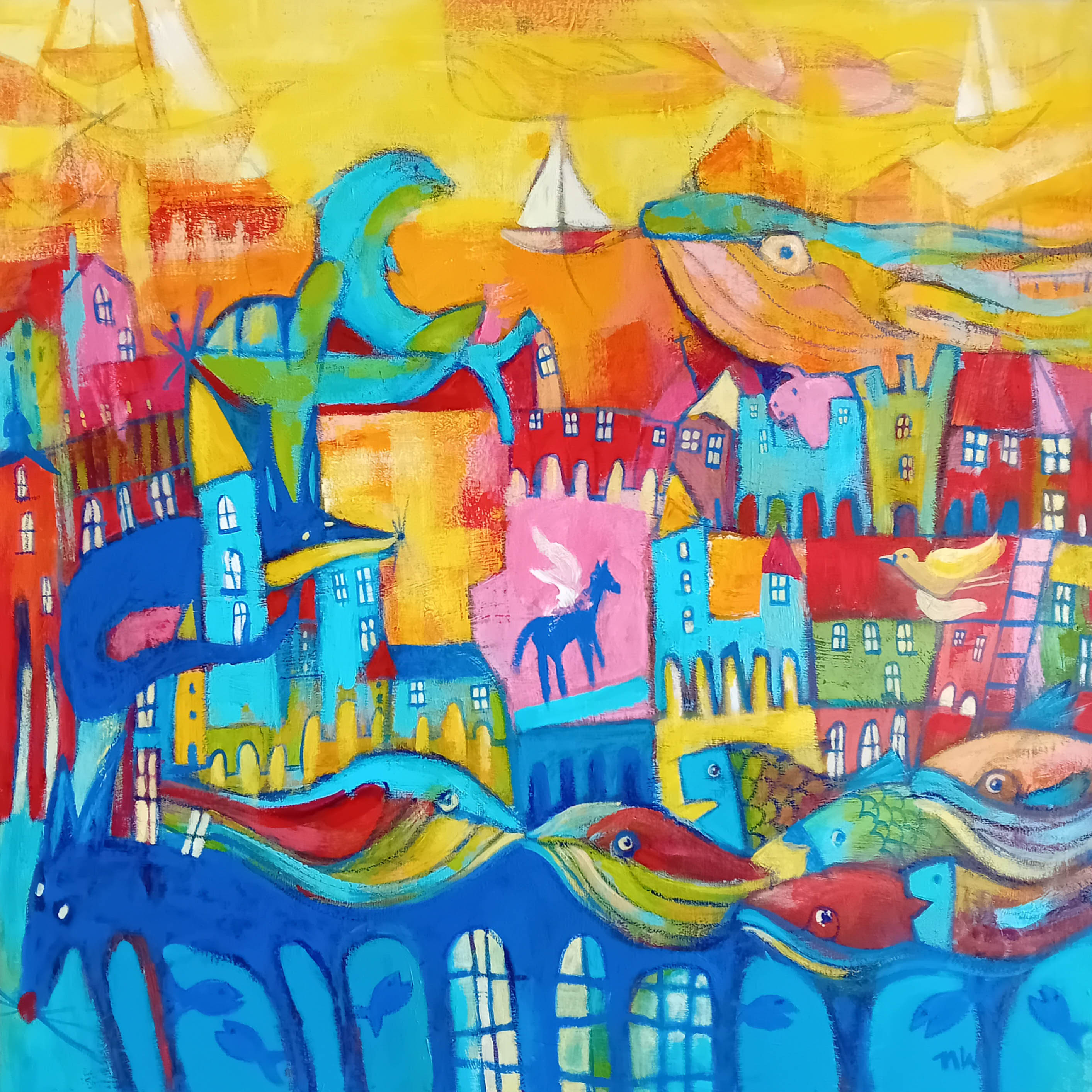 technika mieszana (akryl, pastel tłusta), płótno, 70 x 70 cm,