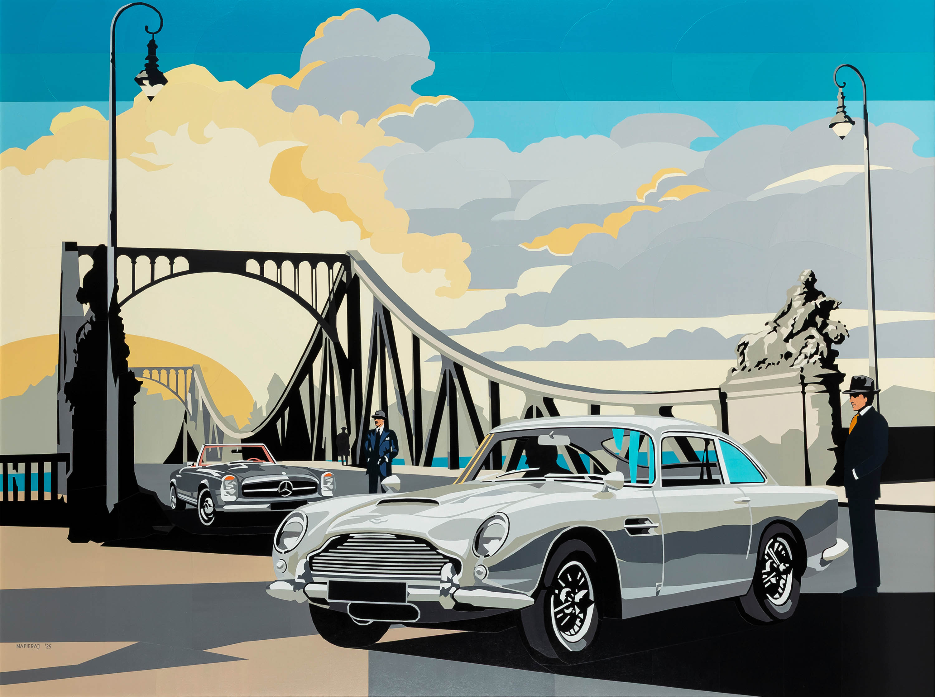 sygnowany na odwrocie: 'Jaub Napieraj | "Most Szpiegów" | 2025 r. | akryl, płyta, 90 x 120 cm'