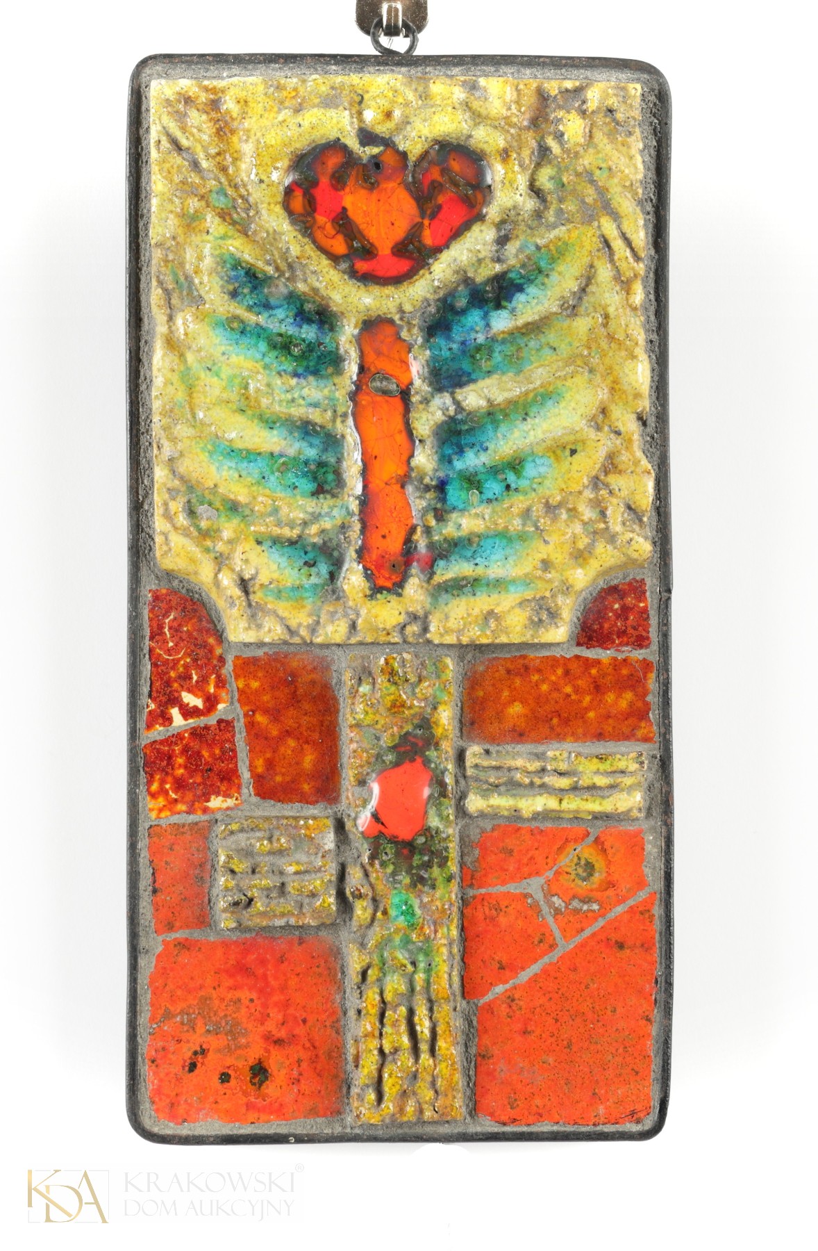 ceramika szkliwiona, metal, 25 x 12,5 x 3 cm