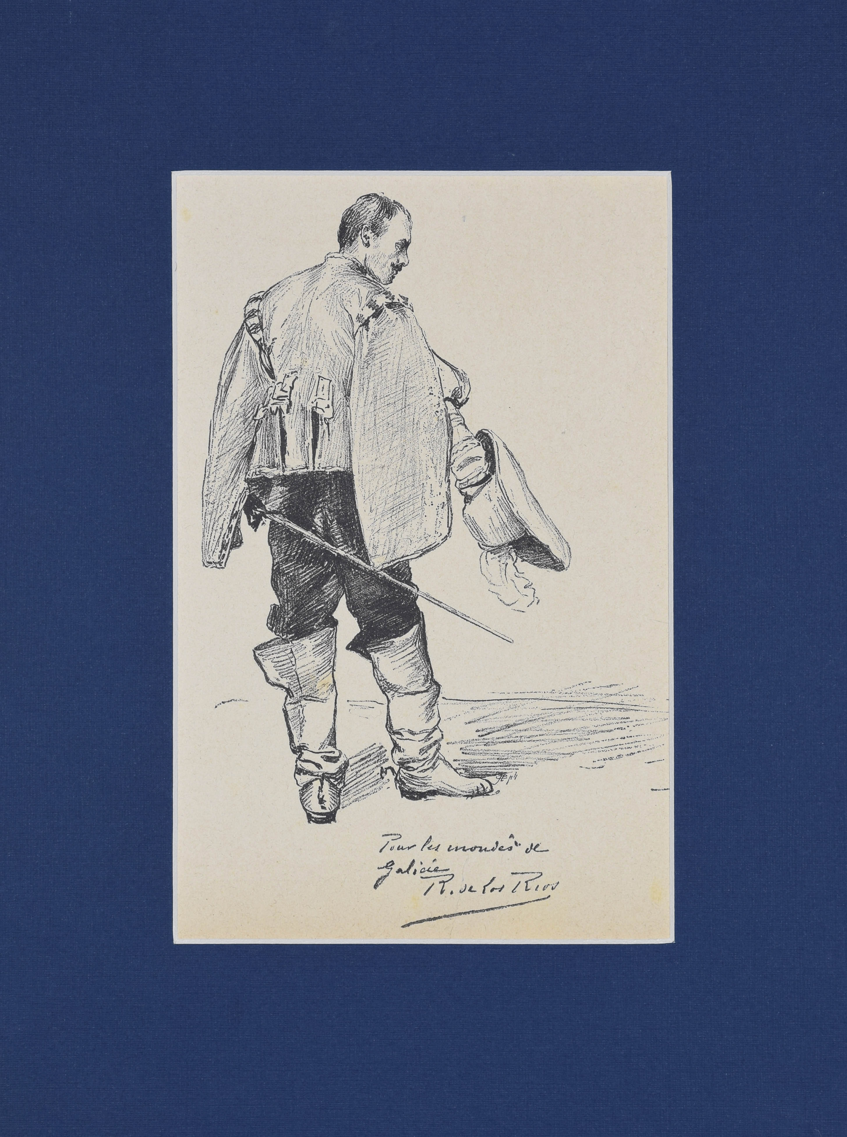sygn. „R de los Rios” pod kompozycją wraz z litografowanymi słowami napisanymi przez artystę „pour les mondes de Galicie”. Litografia z teki wydanej dla pomocy głodującym w Galicji.